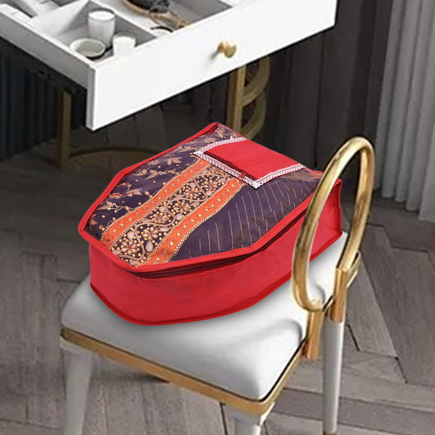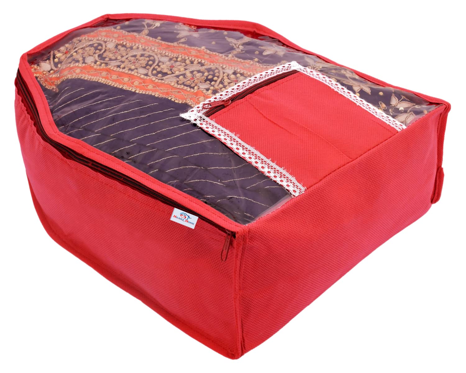 Heart Home Blouse Cover are ideal for storing sarees & blouse for long periods or for convenient packing for travel or business trips. Protect your saree & blouse when you store them or travel with them. It's a best option to use while travelling and it will help you to keep your cloth in a separate cover from other items in your luggage. Two premium Zippers with a large flap gives superb ease of placing and taking out the contents. Front Window to instantly know what is kept inside without opening the bag again and again. Blouse Cover is made of Non-Woven material, it Keeps the Contents Dust Free and Safe and its Very Good Quality and Durable Storage Covers.These Saree covers are Eco-friendly and Re-usable as well as budget-friendly. This Blouse Cover is very easy to clean. Just wet the cloth and take poach.Detailed Specifications: