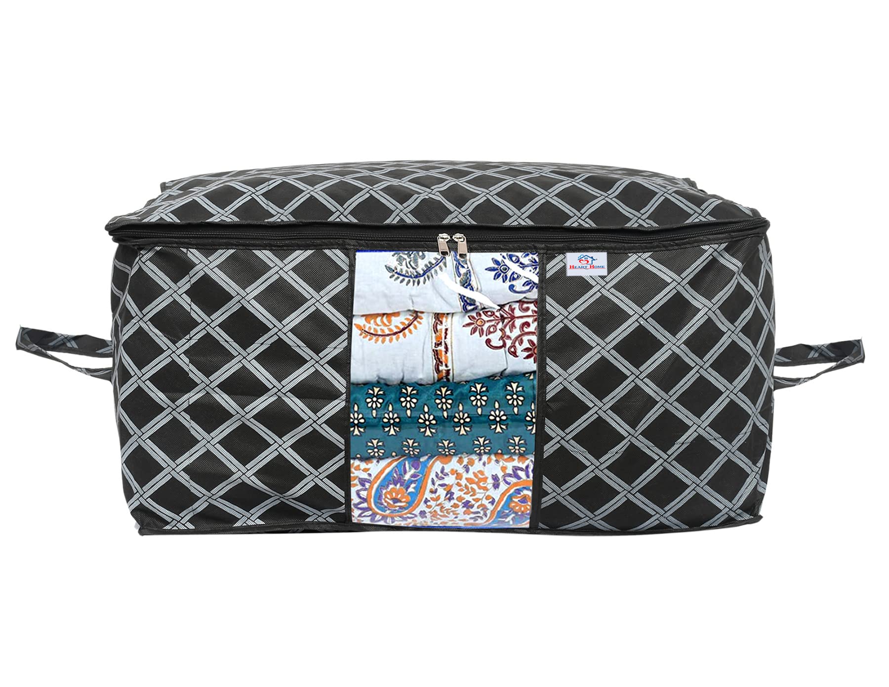 Heart Home's Storage Bag keeps your quilts, blankets, pillows, bedsheets, towels, summer and winter clothing organized. It is perfect for storing those off-season things not needed. It easily goes inside wardrobe, in the bed storage section, shelves, and reduces clutter in wardrobes and closets.The bag can be folded back when not in use. It collapses flat for saving precious storage space.The Storage bag can be kept in your storage beds, closets, wardrobes, storage cabinets. It maximizes your storage space and is perfect for those not-so-frequently used items in your Households.