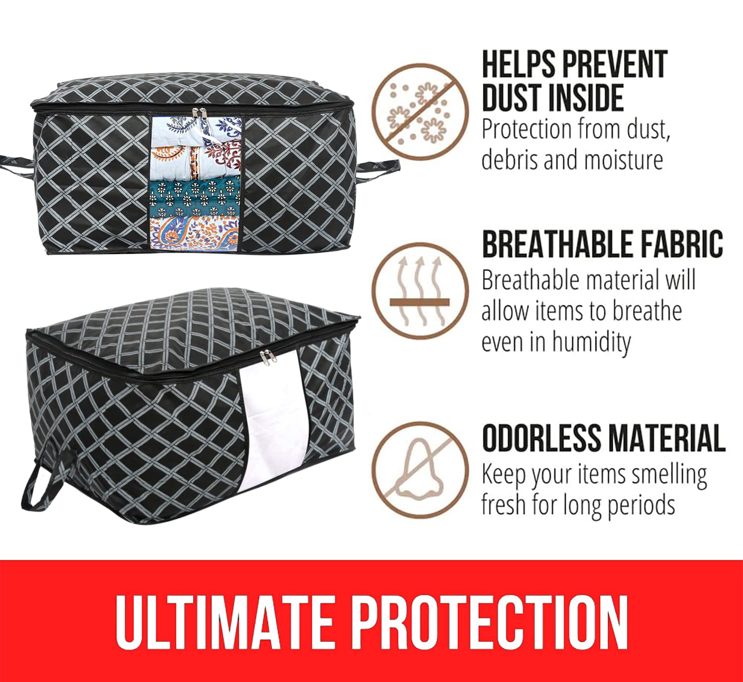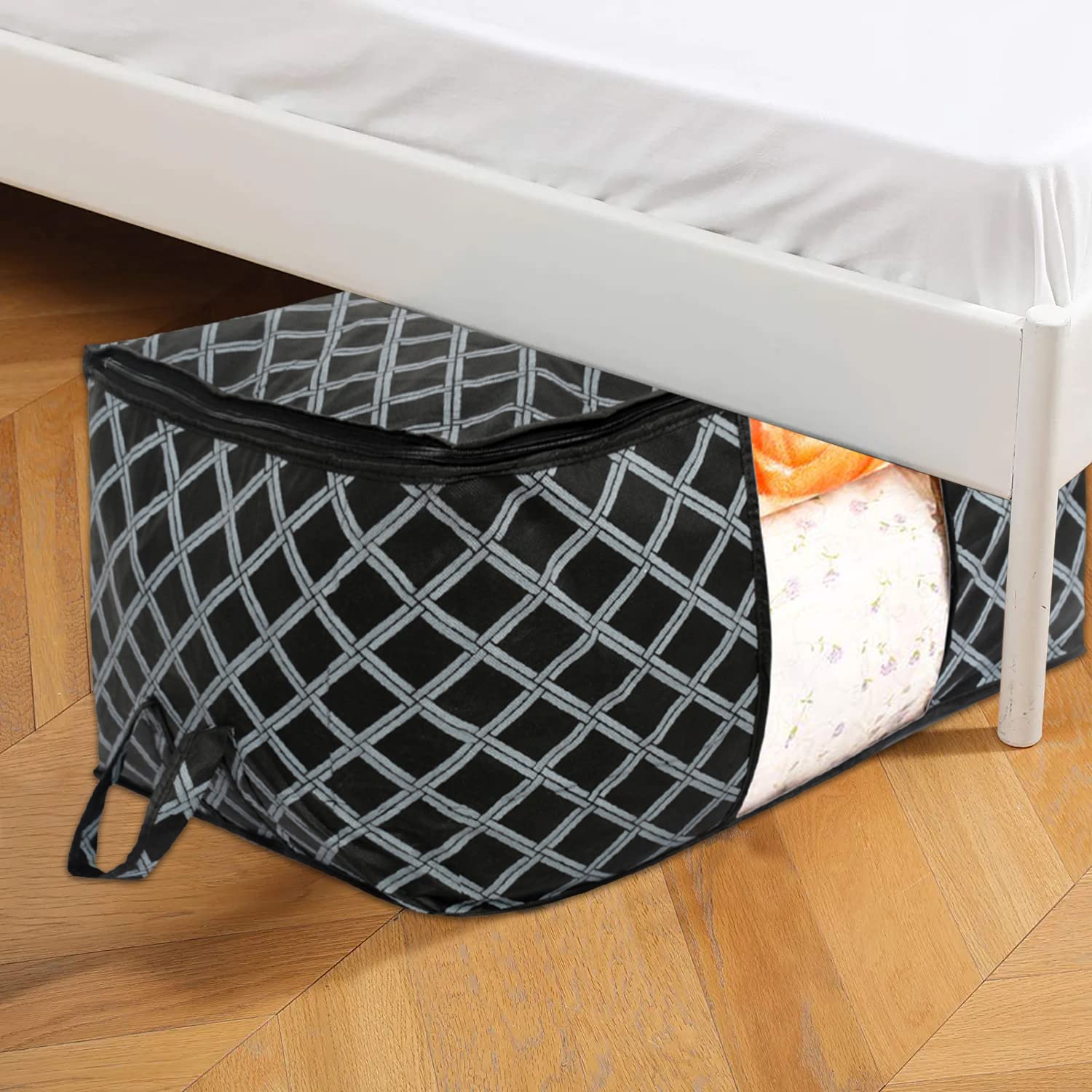 Heart Home's Storage Bag keeps your quilts, blankets, pillows, bedsheets, towels, summer and winter clothing organized. It is perfect for storing those off-season things not needed. It easily goes inside wardrobe, in the bed storage section, shelves, and reduces clutter in wardrobes and closets.The bag can be folded back when not in use. It collapses flat for saving precious storage space.The Storage bag can be kept in your storage beds, closets, wardrobes, storage cabinets. It maximizes your storage space and is perfect for those not-so-frequently used items in your Households.Detailed Specifications: