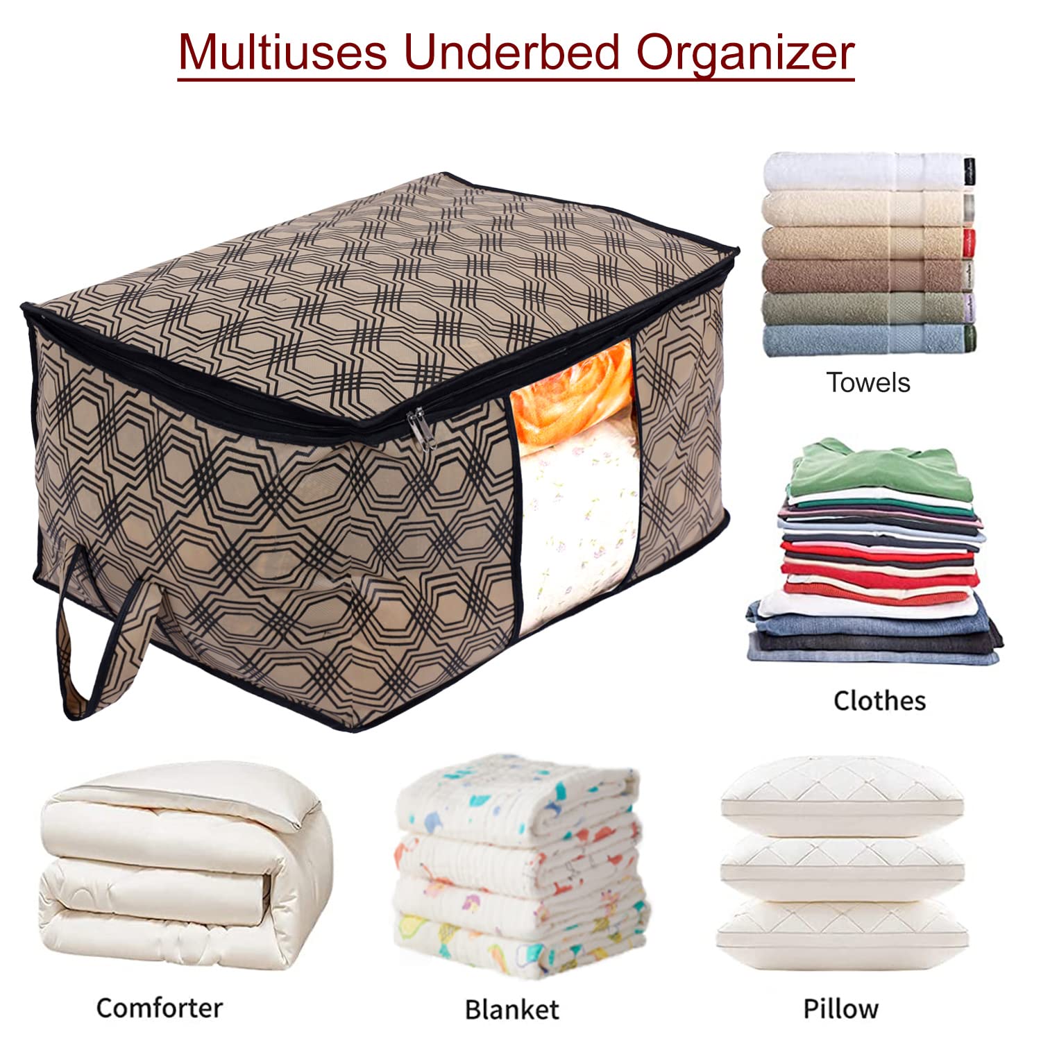 Heart Home's Storage Bag keeps your quilts, blankets, pillows, bedsheets, towels, summer and winter clothing organized. It is perfect for storing those off-season things not needed. It easily goes inside wardrobe, in the bed storage section, shelves, and reduces clutter in wardrobes and closets.The bag can be folded back when not in use. It collapses flat for saving precious storage space.The Storage bag can be kept in your storage beds, closets, wardrobes, storage cabinets. It maximizes your storage space and is perfect for those not-so-frequently used items in your Households.Detailed Specifications: