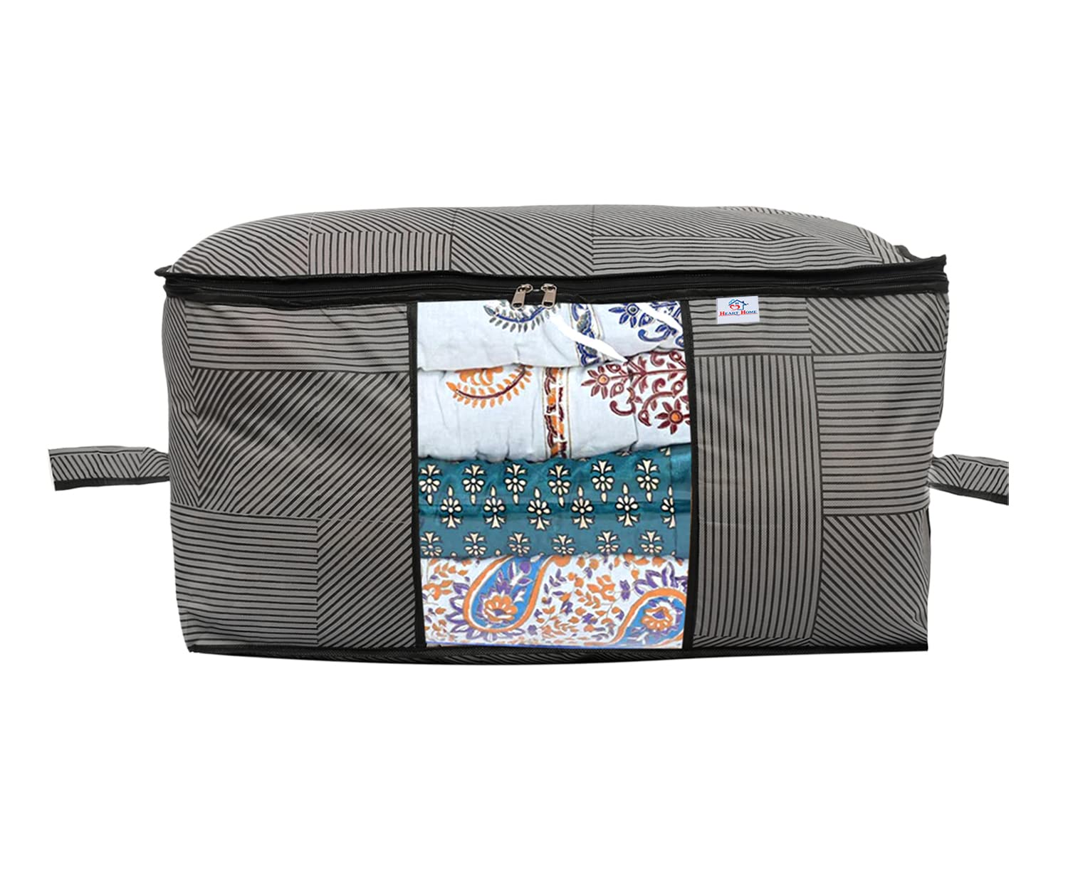 Heart Home's Storage Bag & Saree Cover keeps your quilts, blankets, pillows, bedsheets, towels,Saree and Much More summer and winter clothing organized. It is perfect for storing those off-season things not needed. It easily goes inside wardrobe, in the bed storage section, shelves, and reduces clutter in wardrobes and closets.The bag can be folded back when not in use. It collapses flat for saving precious storage space.The Storage bag can be kept in your storage beds, closets, wardrobes, storage cabinets. It maximizes your storage space and is perfect for those not-so-frequently used items in your Households.Detailed Specifications:
