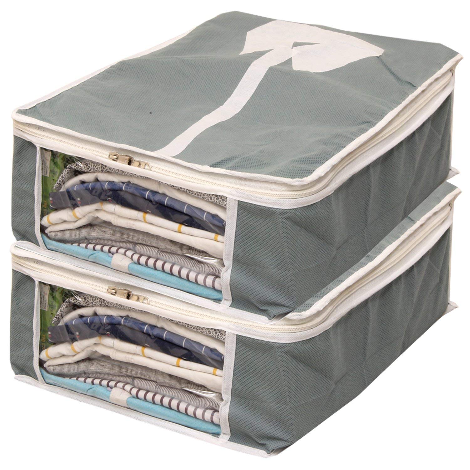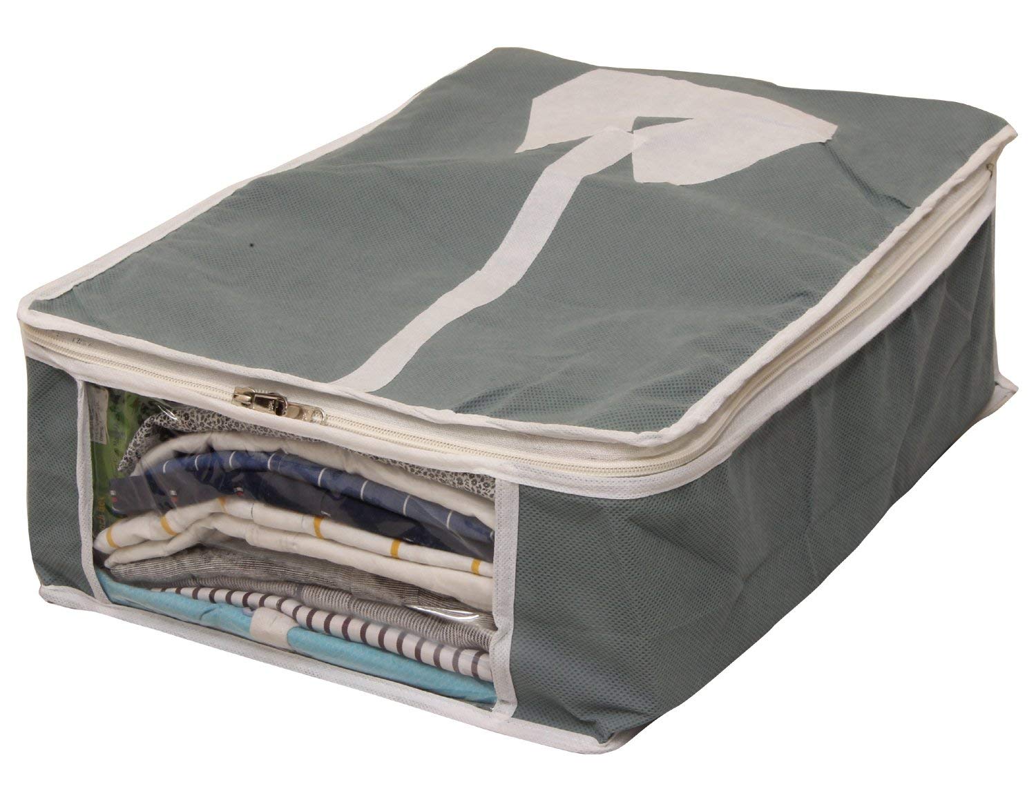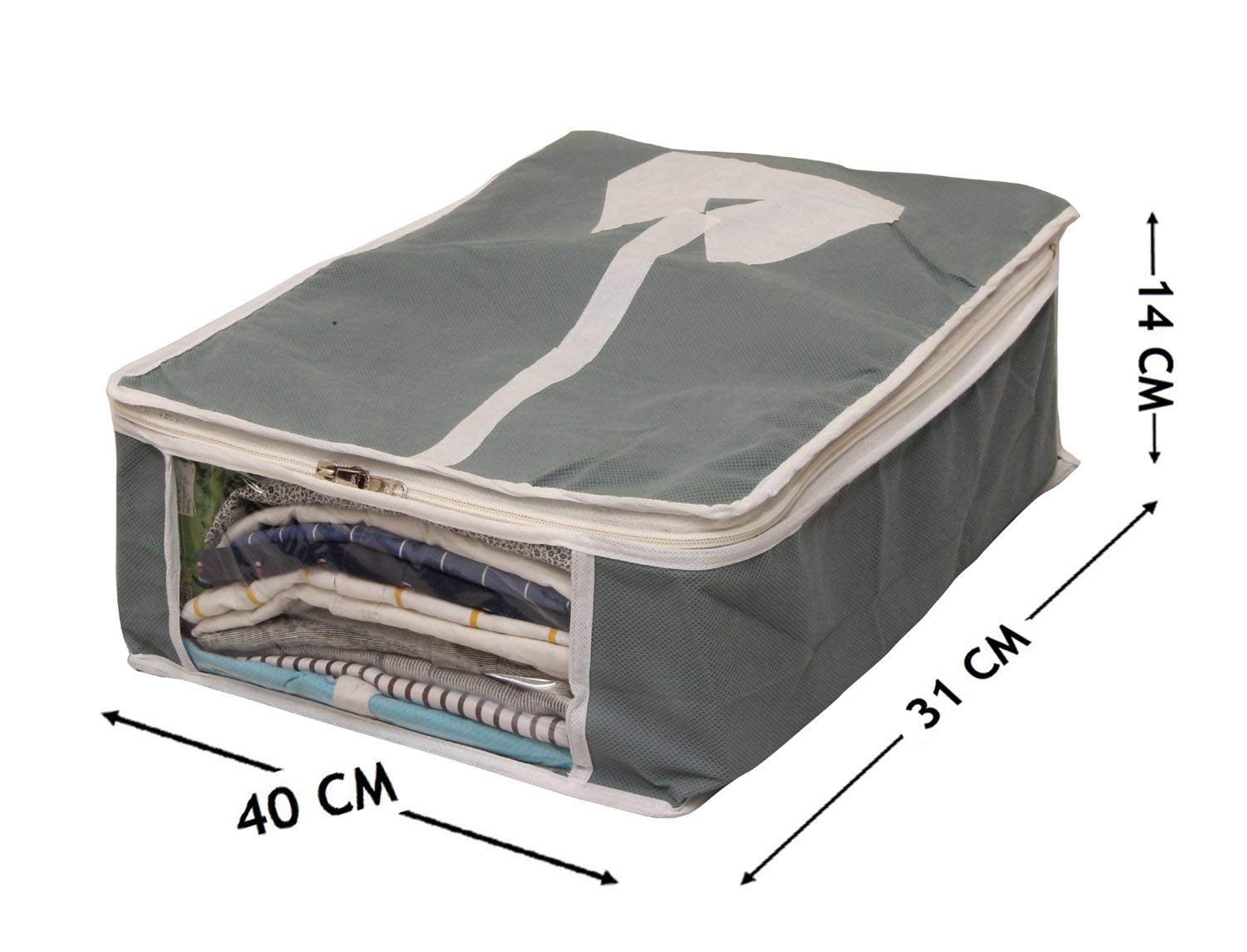 Package Content- 2 Pc. Color- Grey, Design-Plain. Size: 42 cm x 16 cm x 32 cm. Made in 90 GSM Non Woven Material with capacity of 10 to 12 shirts each. It's a best option to use while travelling and organizing the wardrobe. Long life quality cover for organizing your garments.