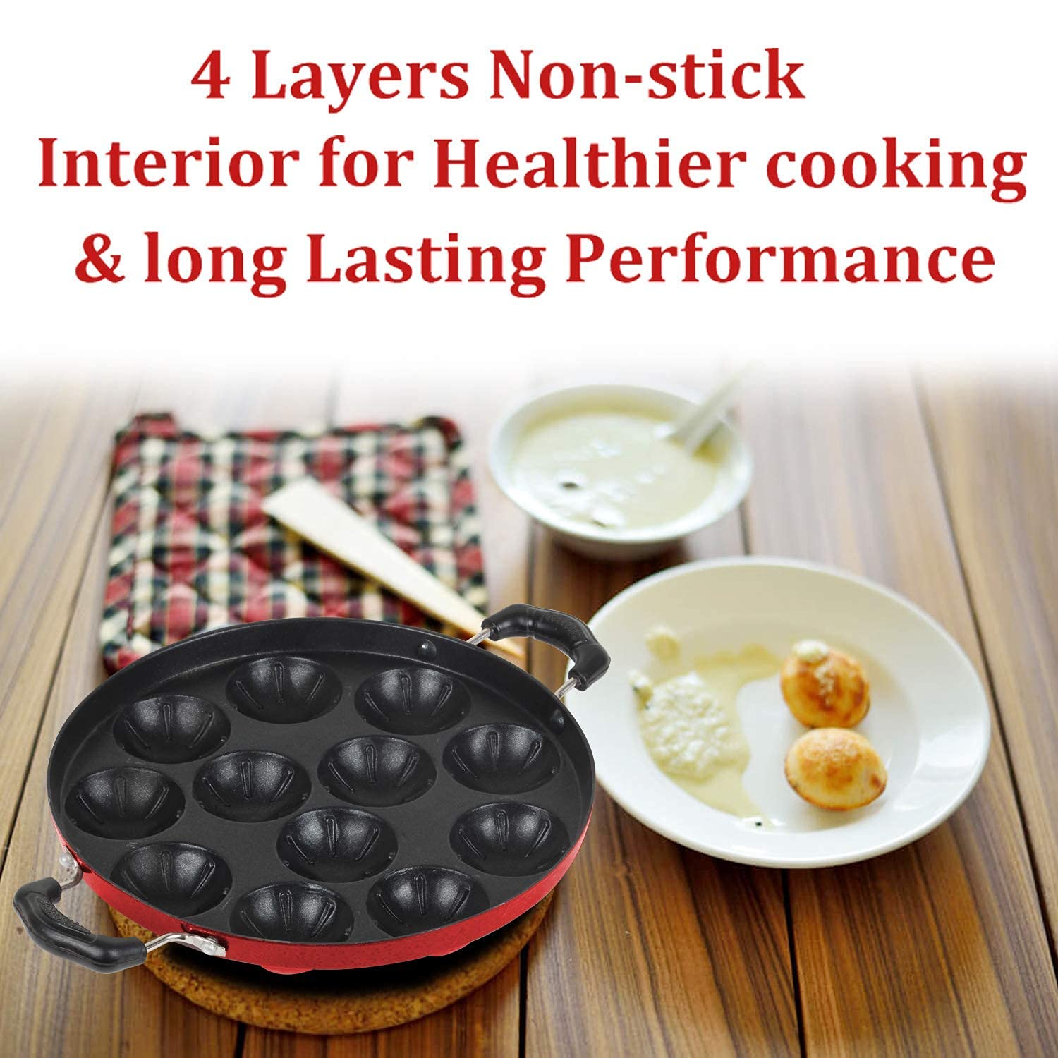 Now experience taste, high performance and health all in one place. The new and improved cookware makes cooking safer and your health better. Its new and improved coating ensures durability and poses no harm to food. All in all, smart cookware for a smart kitchen. This cookware comes with 12 pits. The cookware is designed with scratch and abrasion resistant technology, this cookware range has extreme ability to resist scratches and corrosion on non-stick surface making it extremely durable.We considered all the details and decided that only the best would do. We wanted a pan that would stand up to tough conditions and so we chose a coating that was scratch resistant and durable for your peace of mind. Make fresh Appam, Vegetables, Eggs, Stir-fry, and more!Detailed Specifications: