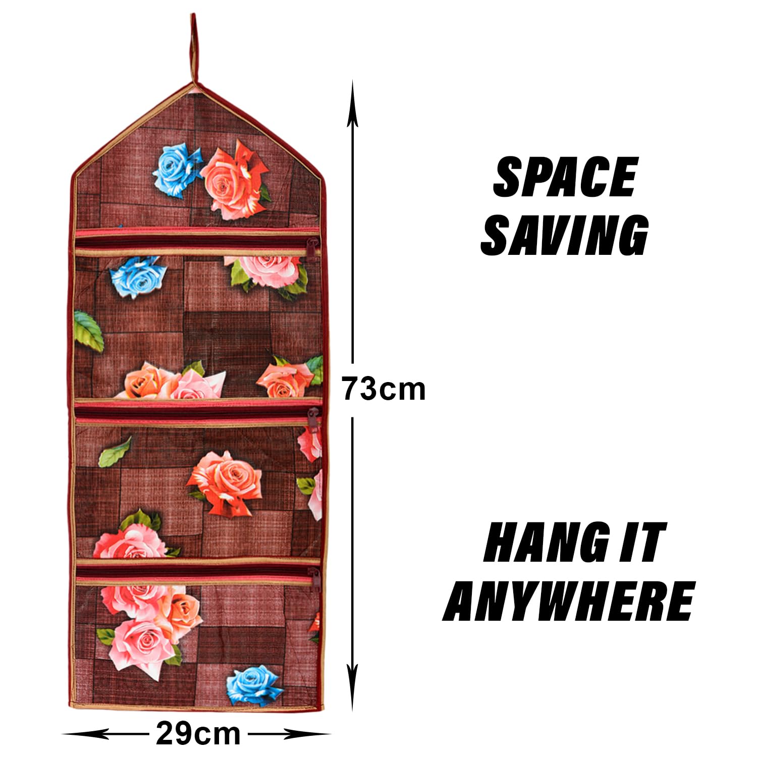 Heart Home is a Popular Brand that offers a wide range of Home & kitchen Products and an Extensive collection of Products, keeping this in mind, we Present to you Paper Holder, Perfect for organizing your Documents and Small items. Perfect to do. This organizer can also be used to store other small items like stationery, keys, document id etc. It can be easily hung on the wall or any suitable surface using the hook or loop. This hanging holder adds a touch of elegance and style to your space with eye-catching Flower pattern. It includes three pockets, providing ample storage space for documents, papers, letters or other small items.Detailed Specifications: