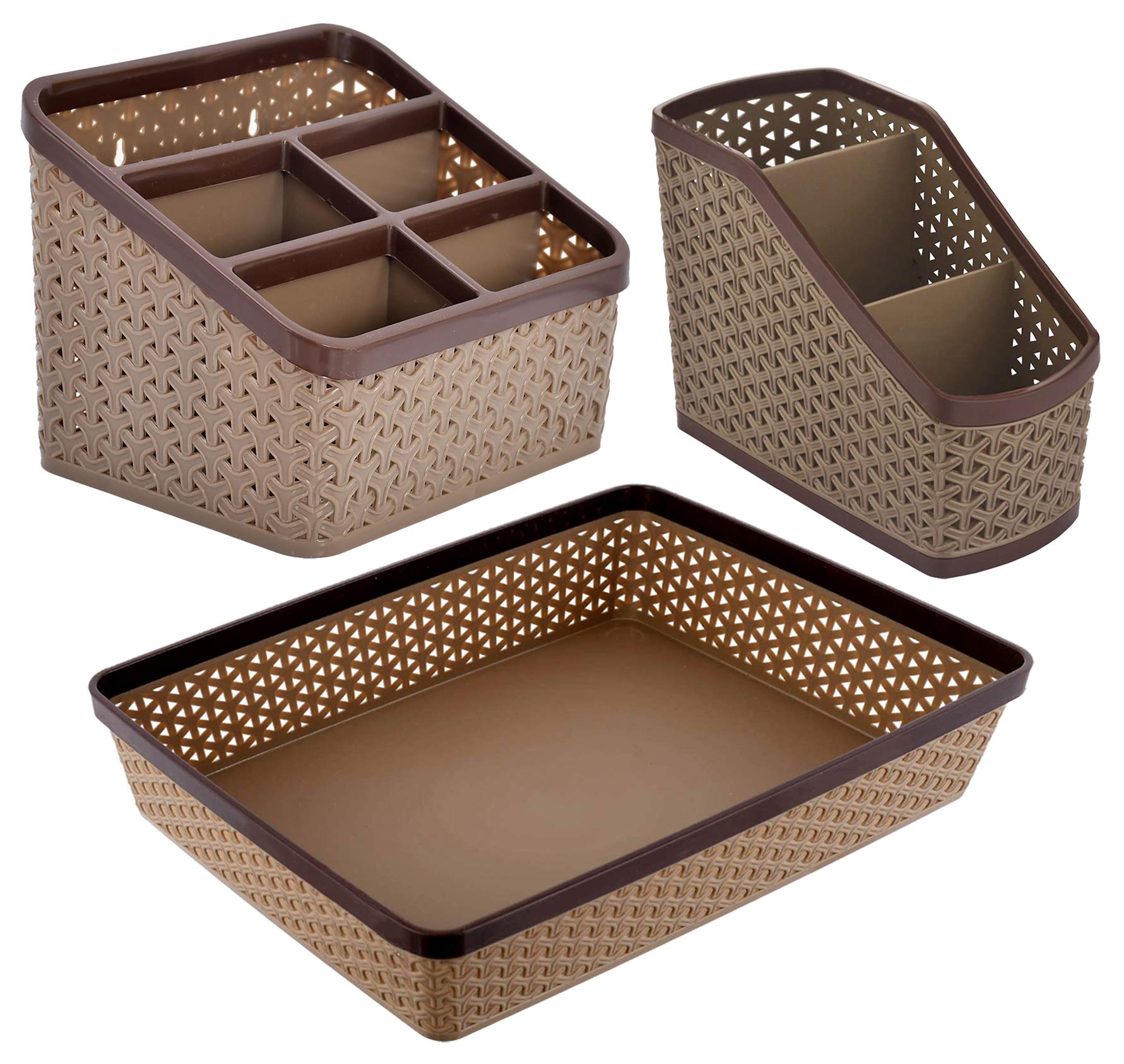 Included Components : | Plastic 2 Pieces Small & Large Compact And 1 Piece Stationary Office Tray Desk Organizer Container |