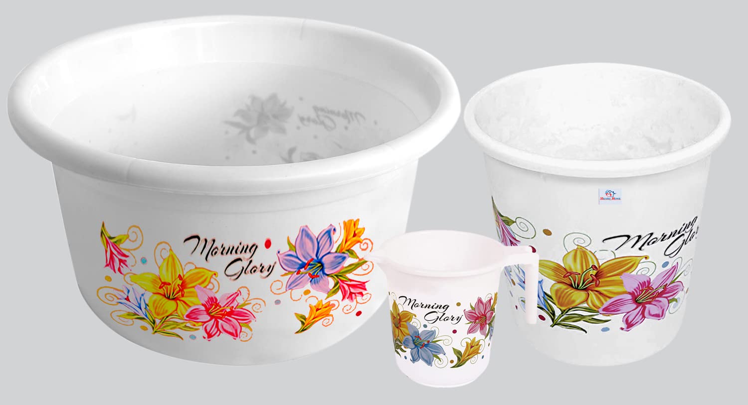 Heart Home Bathroom set with durable and strong plastic which is BPA free,recyclable. Strong and sturdy product it can be reusable for lifetime and also can be recyclable, beautiful design which is made up of of PP material.Elegant Design Set for bathroom home, made out of long lasting durable and unbreakable plastic to add beauty to your home. A complete heavy duty, large capacity, plastic bathroom set. It made out of long lasting durable and unbreakable plastic to add beauty to your home. It Is Complete Set For Bathroom. It Is Made From Virgin Plastic, So Lasting For Long Time. A durable product from one of the India's leading plastic manufacturer. No more hassle's for changing the bucket usually due to breakage or cracks.Detailed Specifications: