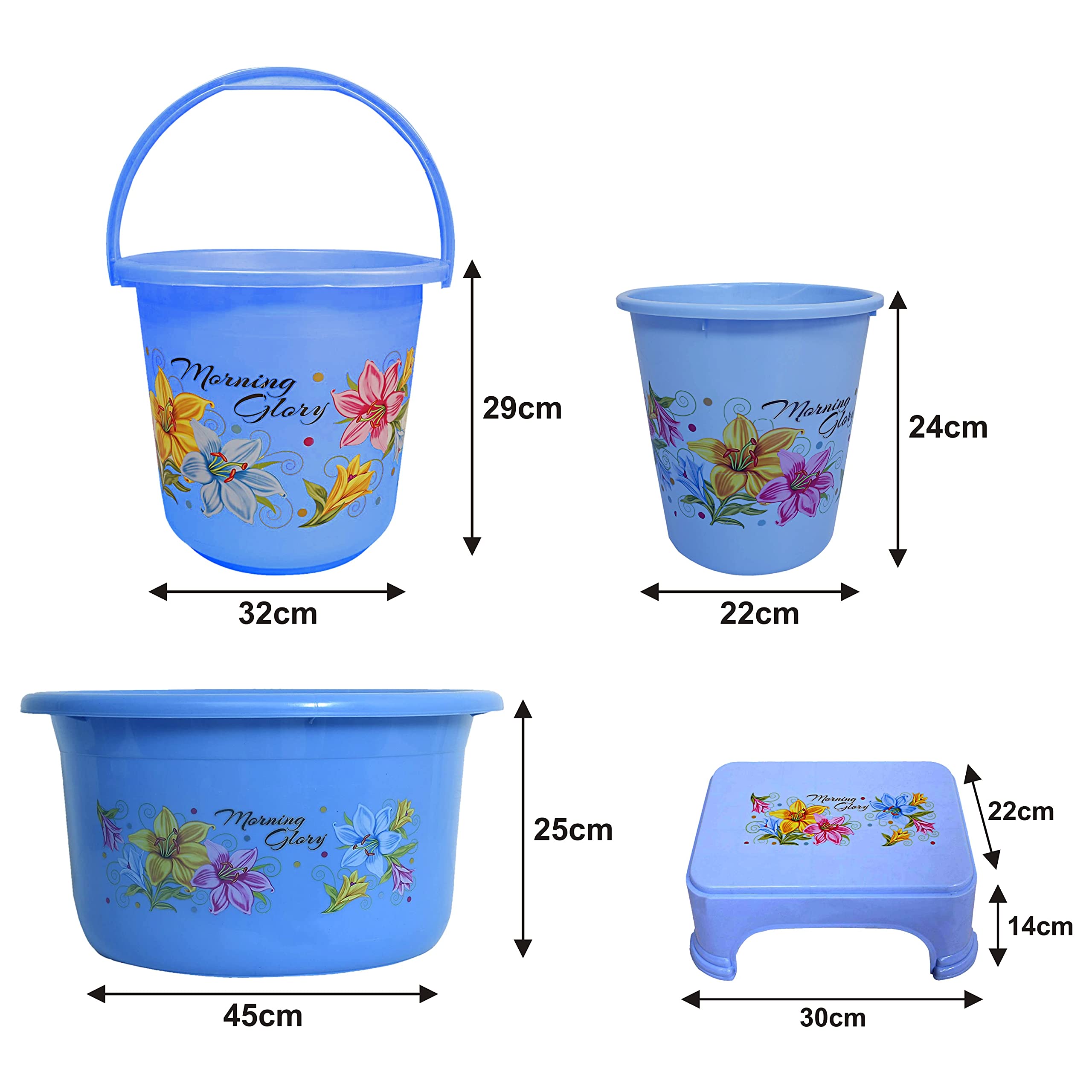 Included Components : | 4 Pieces Bucket, Stool, Dustbin & Tub Set |
