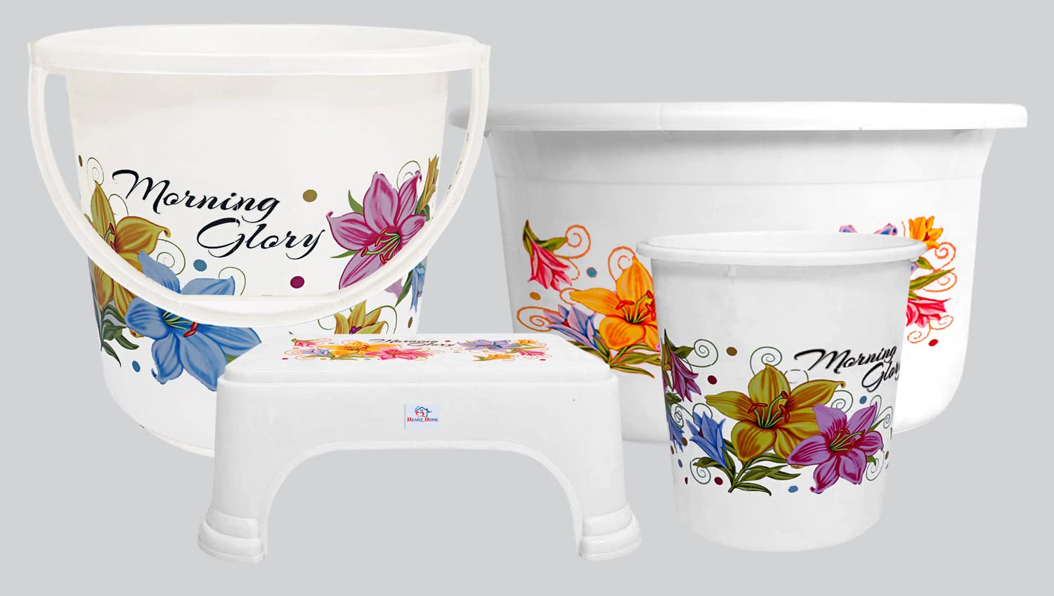 Heart Home Bathroom set with durable and strong plastic which is BPA free,recyclable. Strong and sturdy product it can be reusable for lifetime and also can be recyclable, beautiful design which is made up of of PP material.Elegant Design Set for bathroom home, made out of long lasting durable and unbreakable plastic to add beauty to your home. A complete heavy duty, large capacity, plastic bathroom set. It made out of long lasting durable and unbreakable plastic to add beauty to your home. It Is Complete Set For Bathroom. It Is Made From Virgin Plastic, So Lasting For Long Time. A durable product from one of the India's leading plastic manufacturer. No more hassle's for changing the bucket usually due to breakage or cracks.Detailed Specifications: