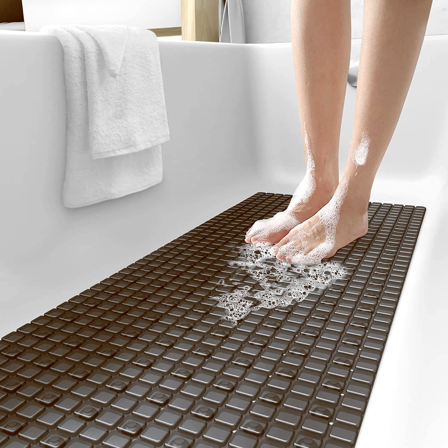 Heart Home Bath Mat makes every bath Safer and More Sanitary. The Bath Mat prevents the risk of Slips and fall, which very often happens on wet slippery floors and on the build-up of soap residues. This Bath Mats are Latex Free, BPA Free, Phthalate-free and cleans easily. Made of soft durable PVC Material, with Foot Pebble bubbles, Drain Holes and Suction Cups. The mat consists of suction cups that once pressed into place, adhere firmly to the floor of a shower area, bathtub or any floor surface and will not shift or slide when you step on or off. The Numerous drain holes provided drains out all the water from the mat. Premium quality, Soft, Durable, Easy Maintenance and Non- Deforming material gives an everyday Safe bathing/showering/walking experience on any floor surface prone to slips and falls. Easy maintenance, Cleans quickly and is, machine or hand washable. Dries quickly too!Detailed Specifications: