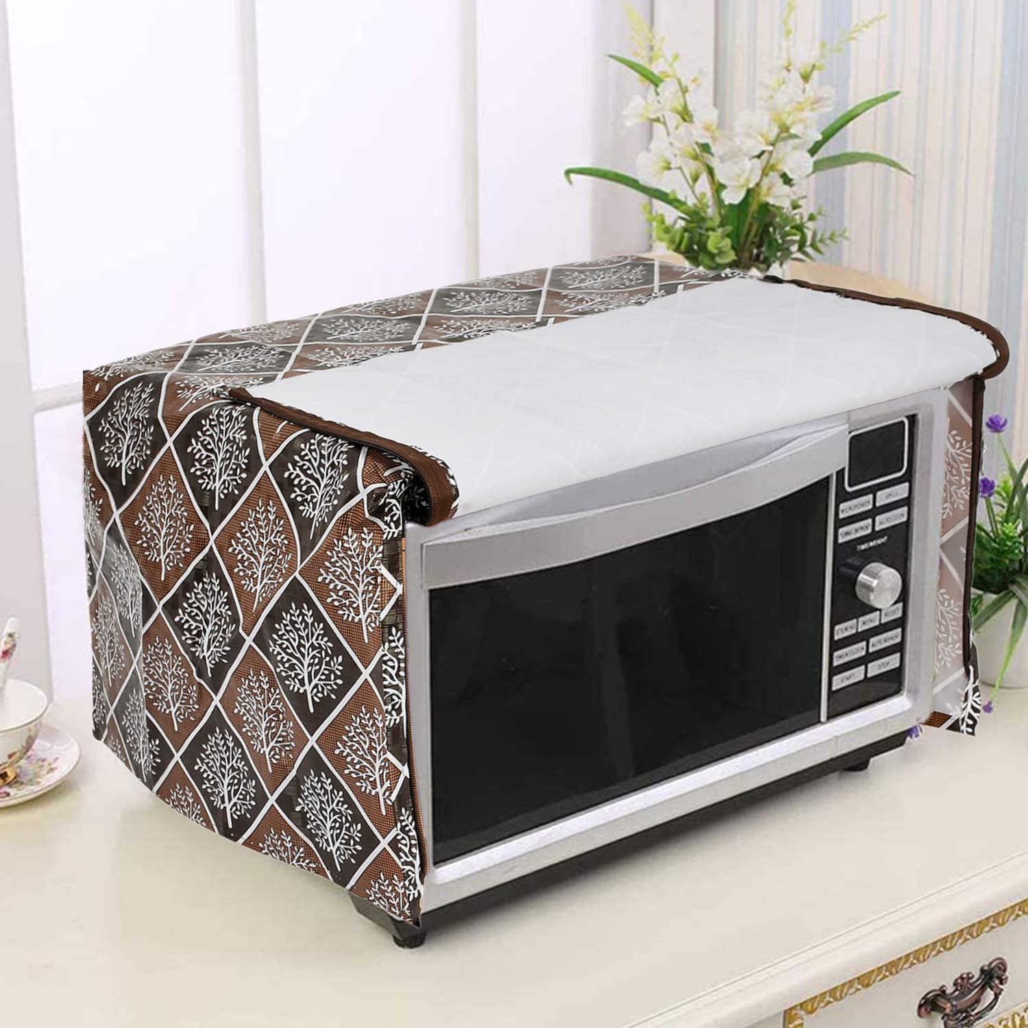 Heart Home microwave oven cover is made of high quality Polyster so this cover is very durable and long lasting. This microwave oven cover enhances the beauty and glamour of microwave oven as well as your kitchen. This protects your oven surface from scratches, dust, stains and other particles. This has two zipper enclosures at front side. The design and look is elegant and very attractive which increase the beauty of your kitchen interior. Made of premium-quality Polyster, durable and easy to wash. Designed for keep the microwave oven from dust.Detailed Specifications: