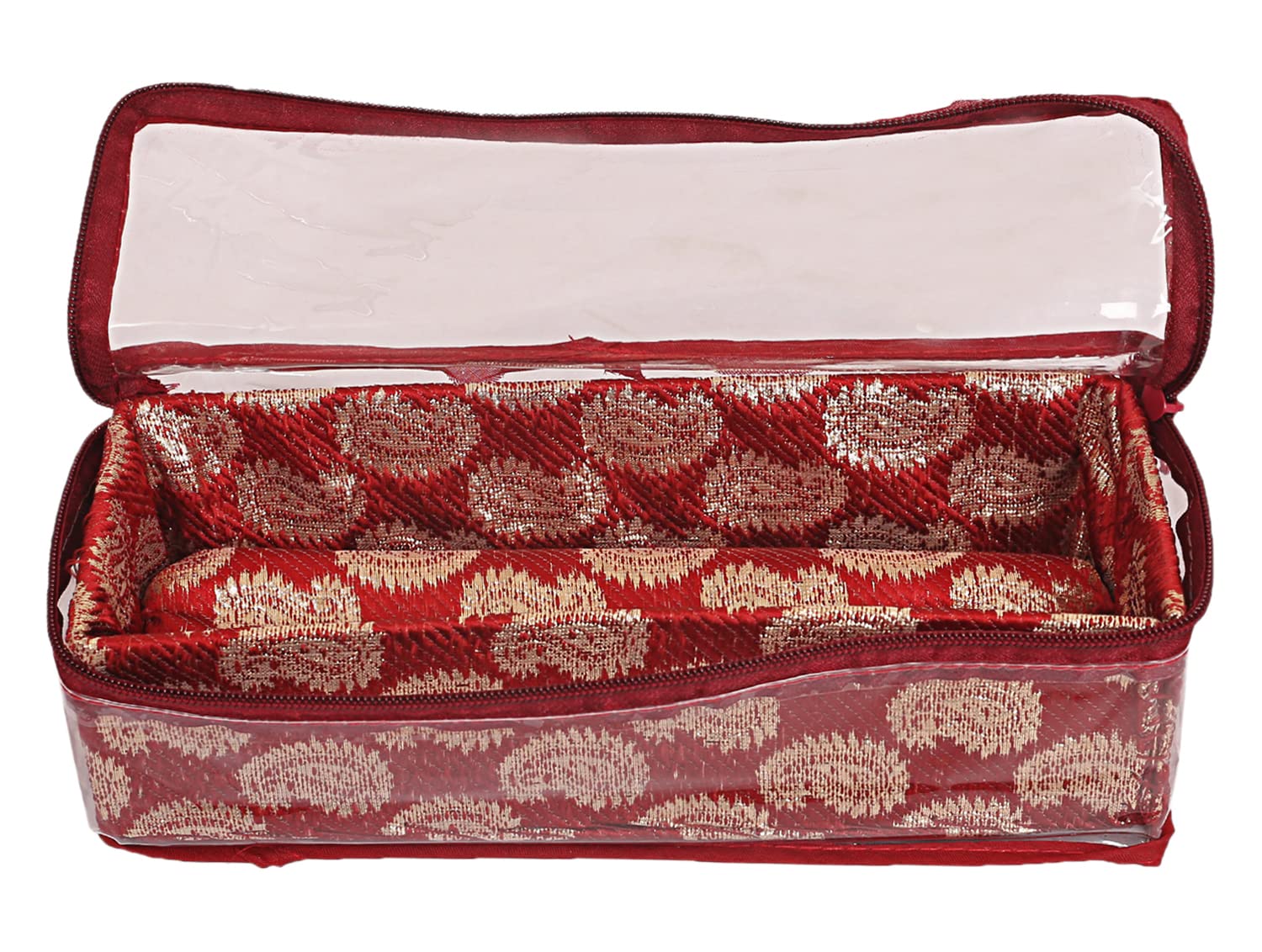 Heart Home storage box, organizer is ideal for storing bangles, watches, Bracelets, jewellery, small accessories etc. This is used to organize your bangles systematically and protect them from breakage so, keep delicate your bangles safely this is enough to keep your bangles and all needs. This bangle box is made of good quality laminated wooden and paperboard material so, this is very durable, long-lasting and very useful. There are 1 rods inside to hold bangles stiffly at a place and avoid unnecessary tangling and breaking. It gives them a strong and stable hold to keep the brittle and beautiful bangles safe. It can accommodate many bangles and helps you in organizing them safely. The box is strong and thus helps in holding the bangles to avoid any breaking and damage. The strong frame fits at any comfortable place and looks indeed beautiful due to its decoration on a strong frame. The three rods fitted into the box completely hold the bangles firmly and strongly. The transparency of the pouch makes it even more revealing and attractive. The see-through pouch helps you see and know what is there inside and what is missing. If anything goes missing or bangles are broken we can immediately take the requiMaroon steps of either replacing or getting new ones. It always reminds us of the availability and unavailability. With elegant appearance and considerate design, this watch case is great for personal use, shop display and home decoration. Will be an ideal gift for birthday, valentine's day, wedding, Christmas and new yearDetailed Specifications: