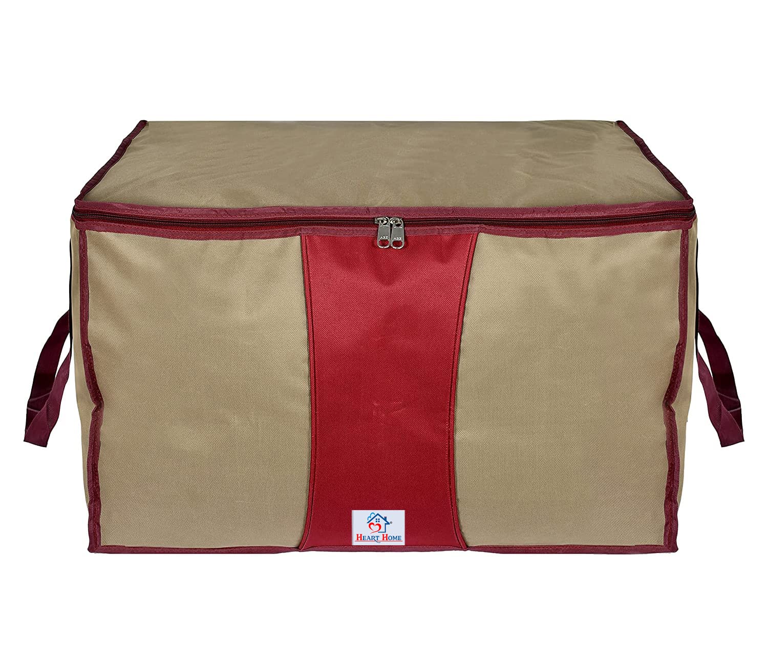 Heart Home cloth storage bag is a great organizing companion for your clothes in the wardrobe that keeps your clothes well maintained in one place. It also saves your efforts for finding Saree at the right time. Ideal for storing saree, lehenga, suits, comforters, blankets, clothes, pillows, toys etc. This storage bag made of Raxine material. Non Woven virgin heavy gsm fabric ensures exceptional durability and long life. Freedom from the smell of naphthalene balls as the non woven breathable fabric lets the inside contents breathes and provides total security from pests,dirt and bad smell.Water repellent non woven fabric keeps your contents protected in the bag from those accidental liquid spills. No need to open and check. Look at the contents inside with just a glance as we have large window on top of the bag. Sturdy soft grab handles for easy lifting, removal and replacement. This cloth organizer are Lightweight and Portable, easily Move to Shelves, Closets, Wardrobe etc—Quickly Pack/Unpack between Seasons, Traveling, Moving, or as Needed. Fold Away or Collapse Flat Under Bed or in Drawers When Not in Use.Detailed Specifications: