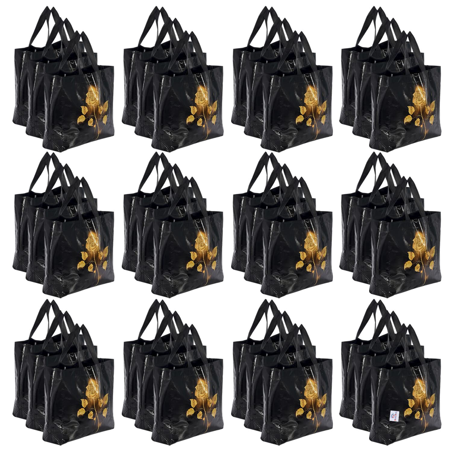 Heart Home Rose Printed Laminated Non Woven Party Favor Gift Bag, Tote Bag, Carry Bags with Handles- Pack of 36 (Black)-50HH01140
