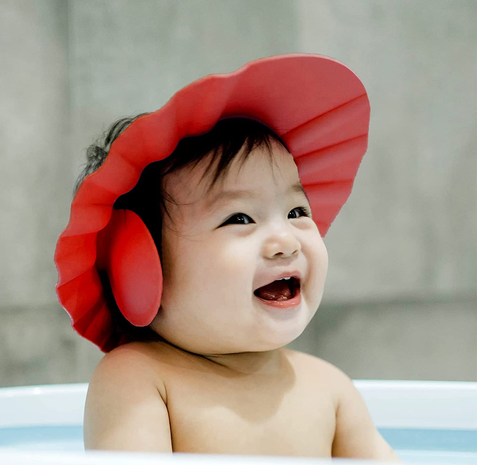 Heart Home Baby shower bathing protection cap to keep the water & shampoo out of their eyes, ears & face, also great protect of your baby from sunscreen and haircut. The size is adjustable through buttons. Its fit for age group 1-5 Years. Comfortable and flexible for the time-and-time to use again., taking showering;sunscreen;and haircut for babies.Detailed Specifications: