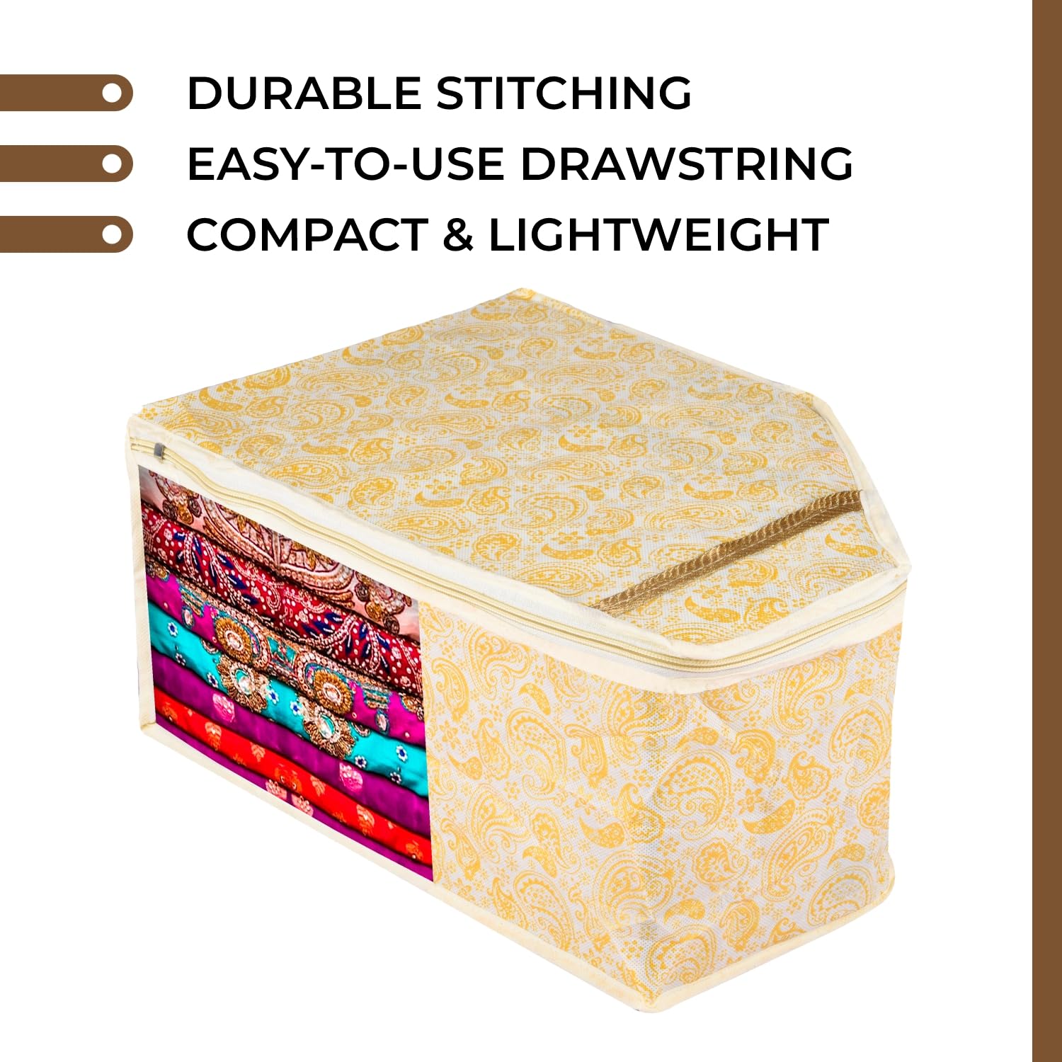 Kuber Industries, we're dedicated to enhancing the everyday experiences of our customers through a wide range of innovative Products. This Saree & Blouse Cover Set spacious, allowing you to neatly stack and organize your beautiful sarees, safeguarding them from dust, wrinkles, and potential damage. Whether you're preparing for a special celebration or simply want to savor the beauty of your sarees, our Combo Set offers a practical and elegant storage solution. Elevate your saree and blouse care to a new level of sophistication and functionality with our Saree & Blouse Cover Combo Set. This set comprises a spacious saree cover and a Blouse Cover, each meticulously crafted to cater to the unique needs of these treasured garments.Detailed Specifications: