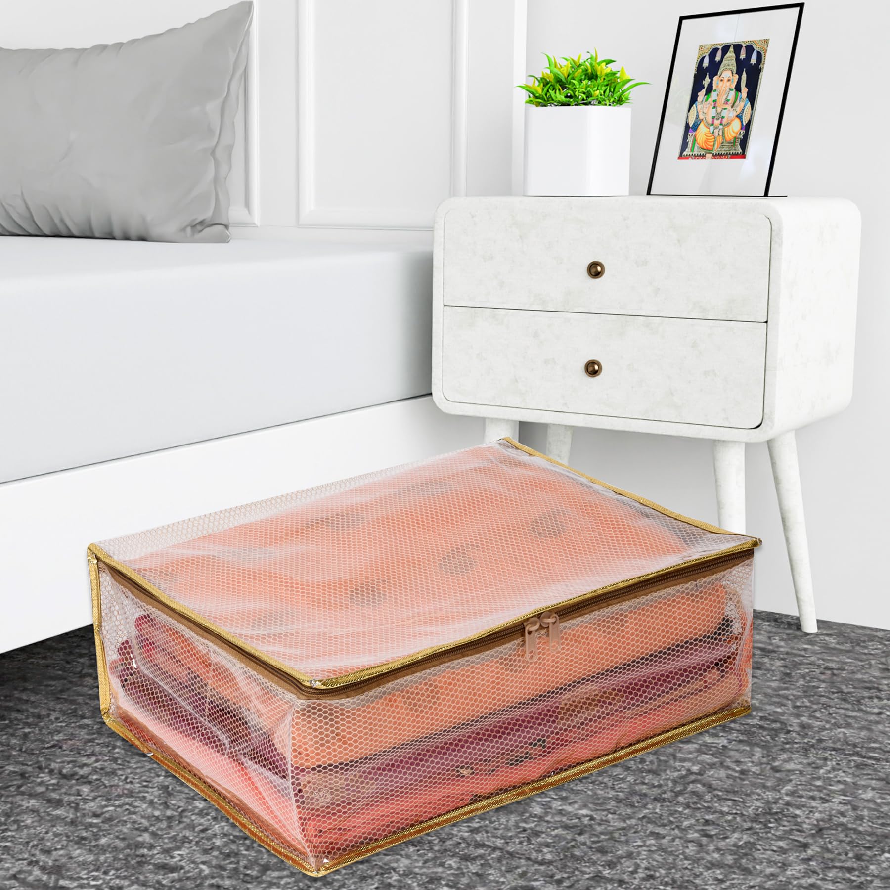 Introducing Heart Home' exquisite Saree Cover – the quintessential solution for storing and organizing your cherished collection of sarees.The Saree Cover's innovative design is a testament to its efficiency as a premier organizing companion.Impeccably suited for the task of streamlining your closet, the lightweight and portable nature of these saree covers further enhance their appeal. they gracefully fold flat, ready to be discreetly stored under your bed or nestled within a drawer.Detailed Specifications: