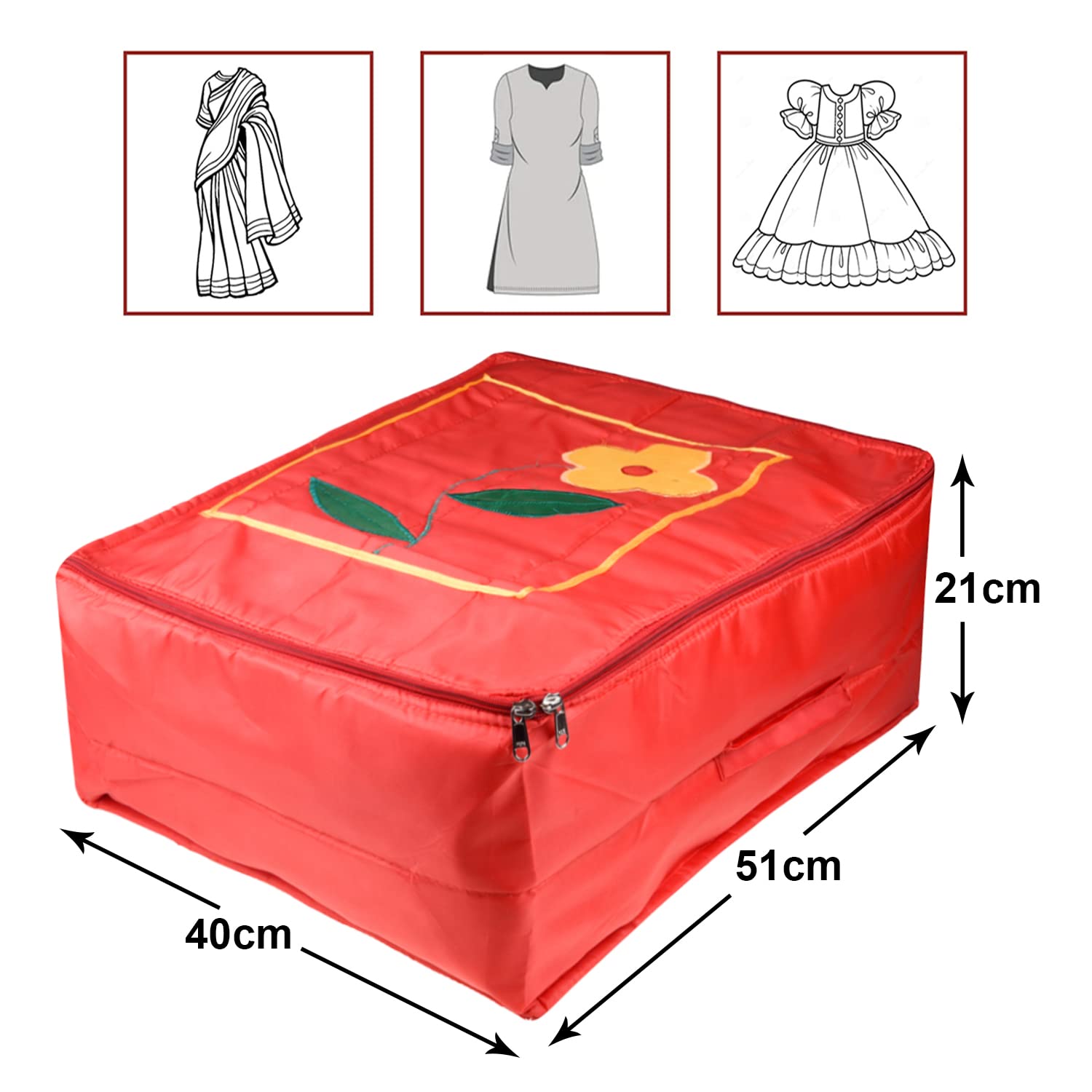 Heart Home has always been coming up with new Innovative products to take care of your family, maybe you all must have liked our products. So we are continuously providing quality products to maintain the satisfaction of the customers. Presenting you extra large size saree cover embellished with flower applique with parachute fabric, this saree cover allows to store your favorite sarees in it, to organize your clothes at one place saree cover a great organizing companion Is. It also saves your efforts to find your clothes at the right time. Storing your favorite clothes in one place becomes very easy with this cover. You can keep these saree covers in your wardrobe. It eases your work with utmost convenience. These saree covers are lightweight and portable. Fold flat or store under the bed or in a drawer when not in use.Detailed Specifications: