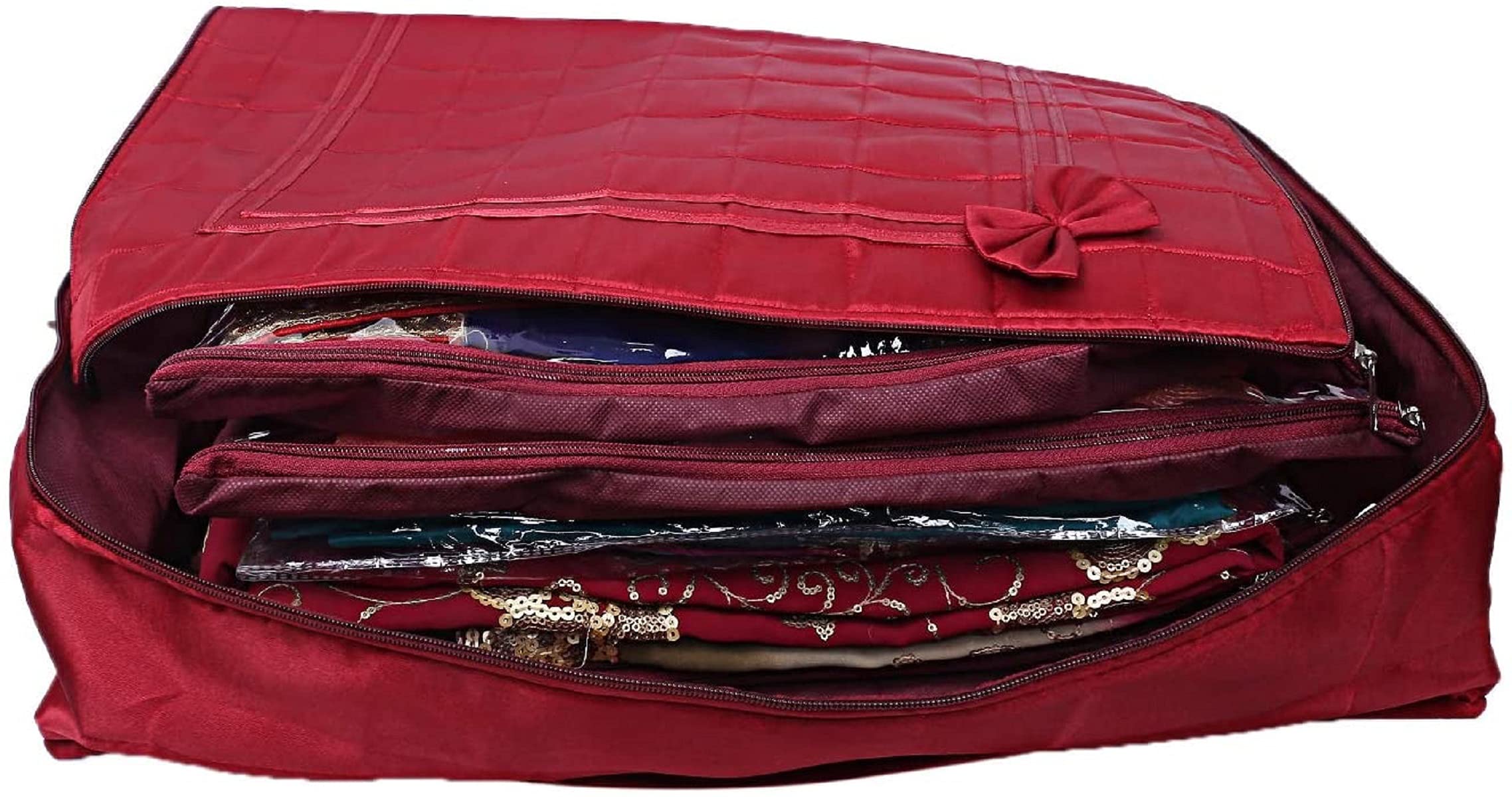 Heart Home flap saree cover is made of quality satin material. There are 12 flaps in it so you can keep 12 heavy sarees simultaneously at one place. All flaps have premium quality zipper and this is used to organizing and arranging your sarees according to you. This is the best solution to keep expensive sarees and other garments in one bag to avoid dust, insect and moisture. This can be a best gift for a women, girls on any occasion.