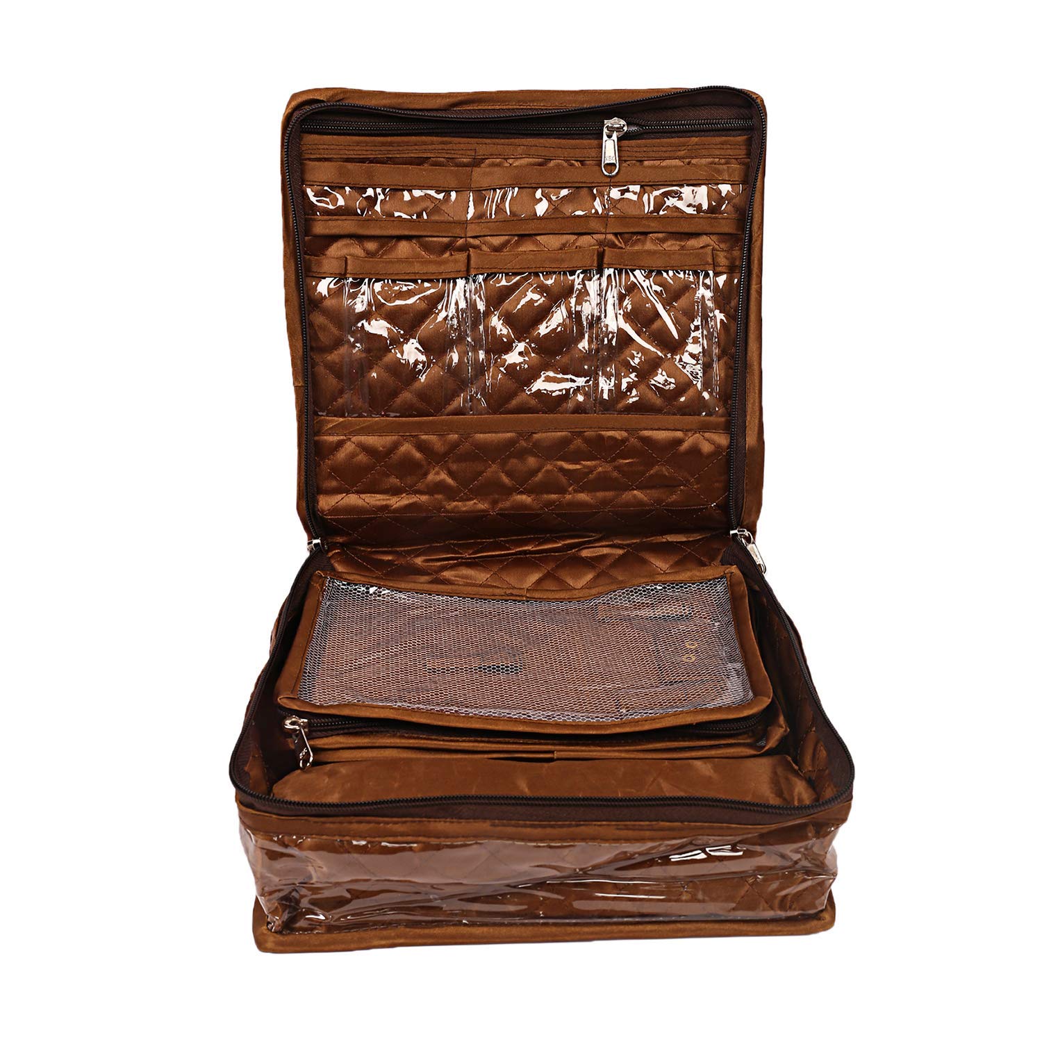 Heart Home jewellery box is made of quality satin material. This is very attractive, durable and long-lasting. You can keep your jewellery or make-up accessories as well as bangles in it so it has multiple usages. Apart from these this has a big compartment and four small pouches with zip closer and this has other small compartment to keep accessories that’s why this is all in one jewellery box. This is enough to keep your jewllery safe and secure.Detailed Specifications:
