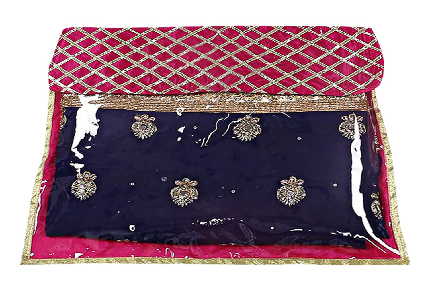 Heart Home satin saree cover to organize and store your heavy and costly sarees dust, dirt and water safe. This beautiful print makes your wardrobe looks beautiful and organized too. Transparent Top gives you the convenience of better visibility. 2 premium quality zippers for easy opening and closing. Made of VIRGIN 90 GSM satin fabric makes it durable and water repellent too. Best option to use while travelling. Transparent top to instantly know what is kept inside without opening the bag again and again.Cotton breathable fabric to keep your stuff inside protected from dust dirt and bad spell. Quilted from all the sides to give cushion to whatever is stored inside.Detailed Specifications: