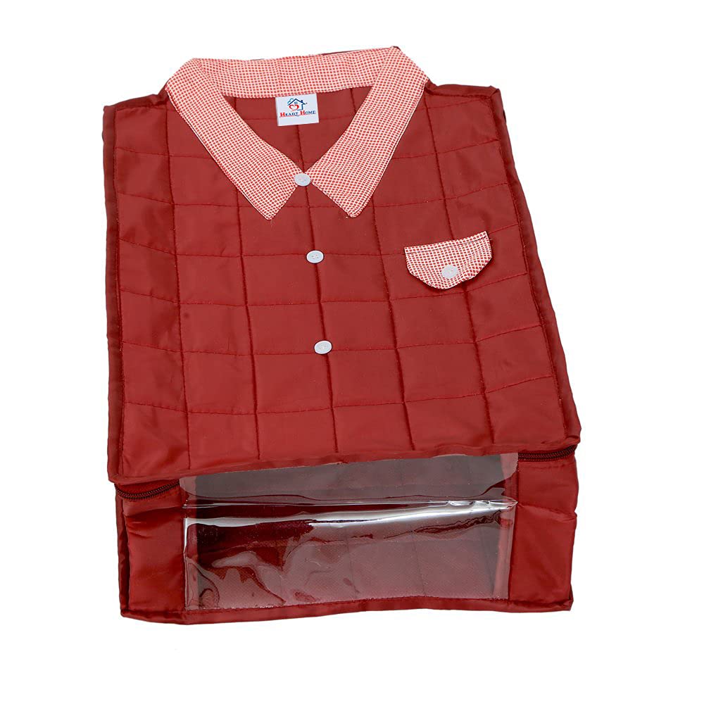 Heart Home Shirt Cover is Made of quality Parachute material with a storage capacity to store 5-7 Shirts. 2 quality steel zips for easy opening and closing, and a transparent window to see the inside kept stuffs, Best product to keep your wardrobe organized and to use while travelling. This stacker is capable of keeping your clothes organized as it can hold your clothes easily and can facilitate the orderly arrangement of your clothes.Forget the worry of keeping iron clothes wrinkle-free with this clothes organizer as its astute creation easily accommodates and protects iron clothes.Detailed Specifications: