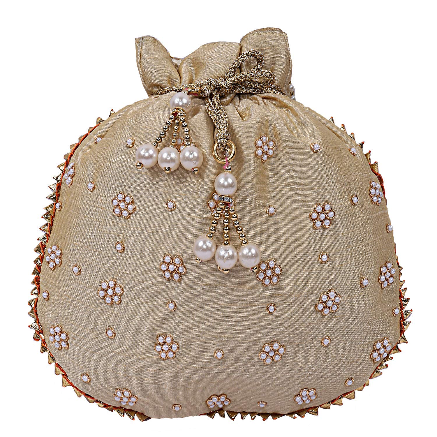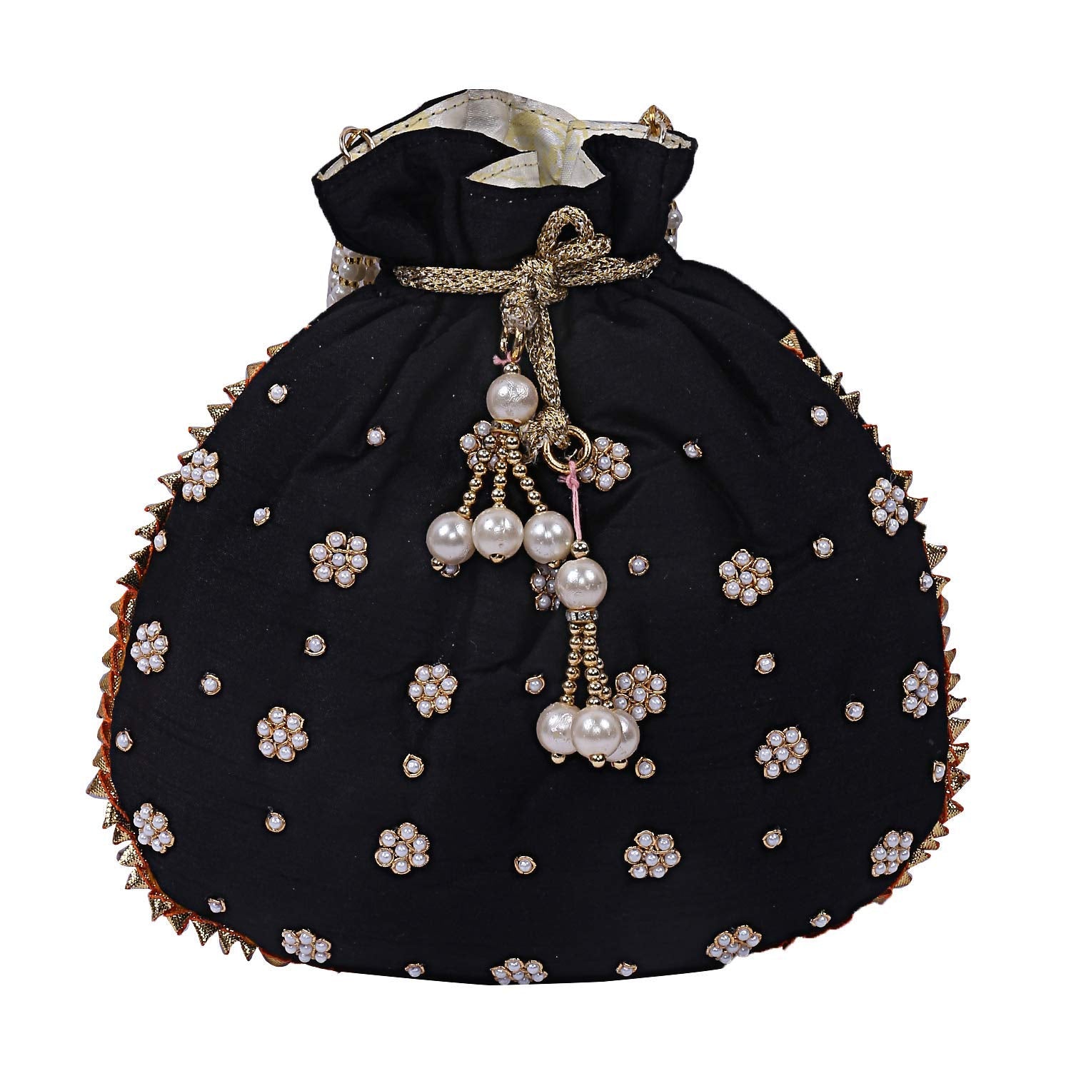 Heart Home Potli bag is made of quality silk material with a unique and attractive beaded art work. This potli is good match with both Indian and western outfits and are superb for wedding and festive parties. This would be best complement to your designer saree, lenhga or any other kind of dress. This is the combination of traditional and modern beaded work and this potli bag makes you glamorous and unique among your friends. This is enough to keep your accessories and all needed essentials and it can be a best gift for any woman.Detailed Specifications: