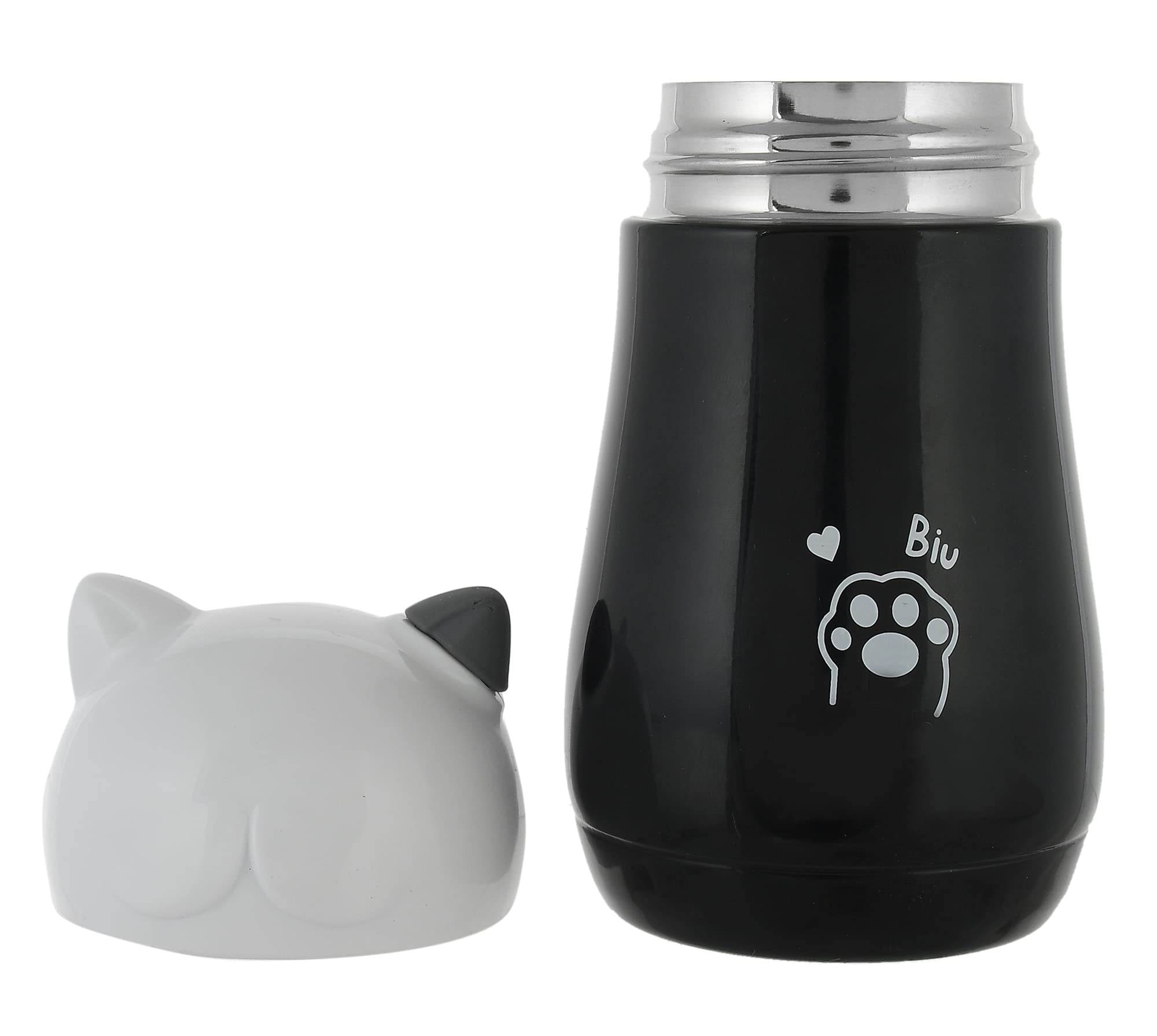 The trendy and eye-catching Kitty styling makes this insulated coffee mug a stylish accessory for the office and home, you'll love showing off all around town.It is also a great gift for any occasion for family or friends.This double walled vacuum insulated water bottle locks in your drink’s temperature. Hot drinks and cold drinks up to 24 hours.No matter the temperature of the liquid in this bottle, it will never sweat or be hot to the touch.This coffee mug Has a leak-proof and BPA-free lid to prevent any spills.The right size of the narrow mouth makes drinking easy and adding ice cubes easy.Detailed Specifications:
