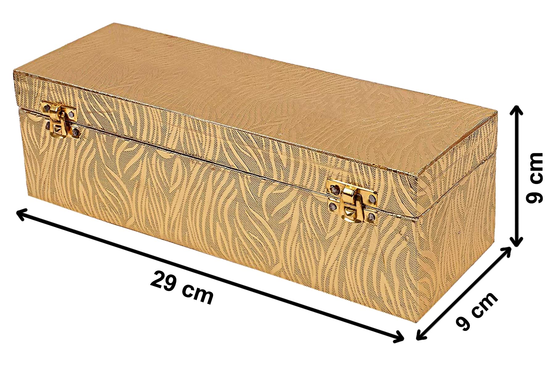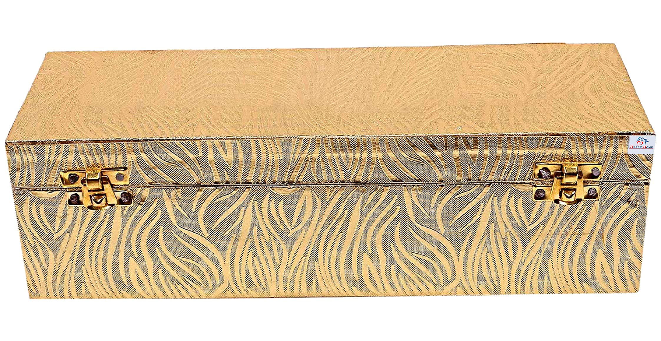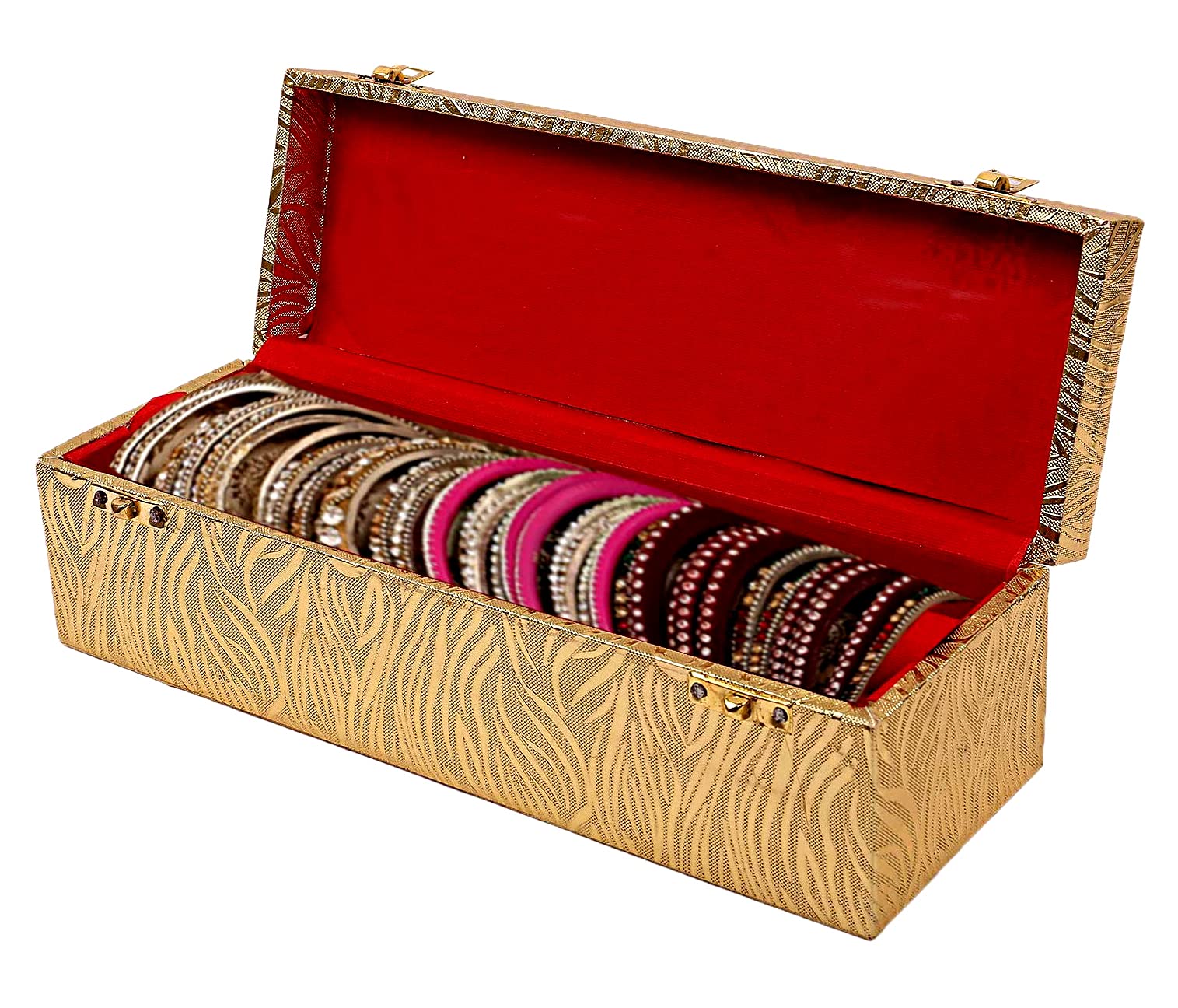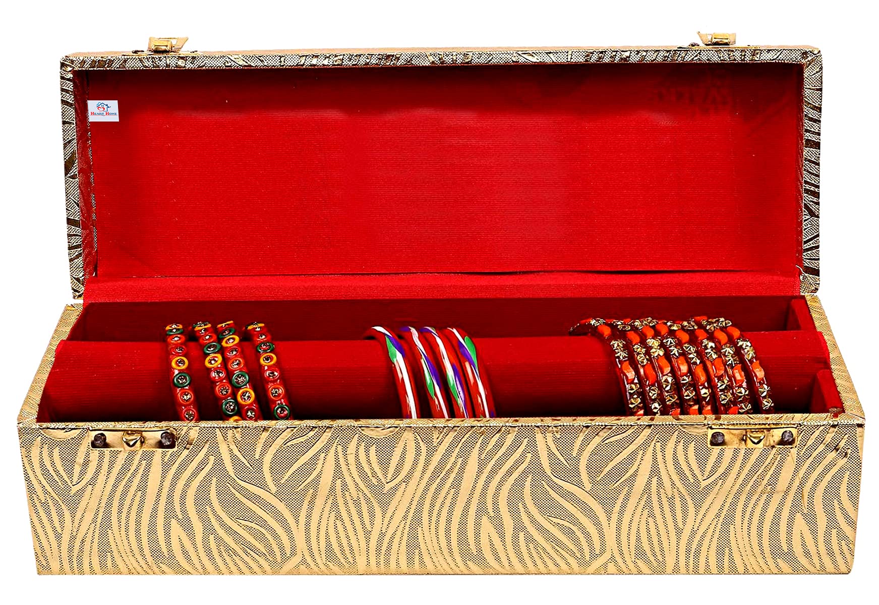 Heart Home Bangle box is made of good quality wooden and paperboard material so, this is very durable, long-lasting and very useful. This has an attractive and elegant look and has coated Soft leather with Gold color which increases the beauty of this bangle box. This is used to organize your bangles systematically and protect them from breakage so, keep delicate your bangles safely. Keeps delicate bangle safe and dust free a perfect gift durable. It's a best option to use while travelling and in home it will help you to keep your heavy bangles in a separate cover from other items in your luggage, lock. Now organize your bangles systematically and protect them from breakage. Ideal Choice For: wooden bangle storage box, Bracelet Box, Bangle Box, Bangle case, Vintage Vanity Box, Bridal Wedding Box, Gift (Shagun) Box, Wrist Watch Box, kit Organizer, makeup earring box etc.Detailed Specifications: