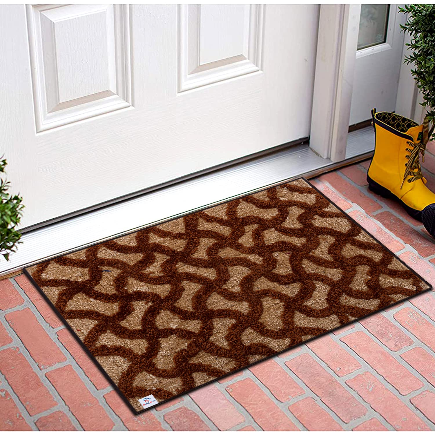 Heart Home Indoor door mat was designed with an extra-absorbent top layer that traps mud and moisture from muddy boots and paws, helping you to keep unwanted debris off of your floors! The mat is a perfect choice for any space in your home that is vulnerable to dirt and moisture, such as mud rooms, entryways, and garages. While our door mat’s primary purpose is to provide your floors with an extra layer of protection, it is also plush and soft enough for bare feet. It is great for home decor, which can be used as bath mats, indoor welcome mats, front door mats, home carpets, can be placed in bedroom, back door, living room, office and so on. Multi-purpose door mats to use the heavy Gripper Non-Skid backing on dry floor won't slip or scuff floors. It washable just machine shake or hose off with water this magic clean doormat.Detailed Specifications: