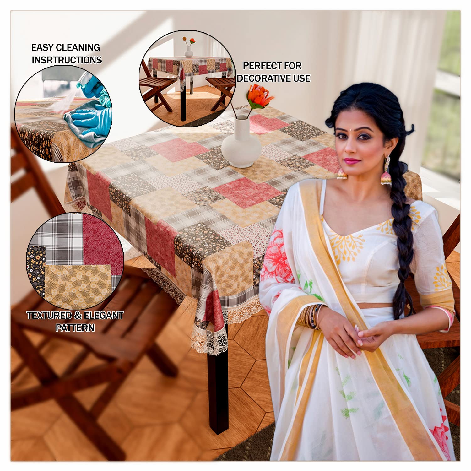 Heart Home Has Always Been Introducing Some New Product to Take Care of Your Family, Probably You all Have Liked all Those Products too. We Have Brought for You Square Table Cover Which You Can Also Use Well for Your 4 Seater. Its Pattern And Its Color Will Also Attract More Attention to You And the Guests Coming to Your Home. This Square Table Cover And Waterproof Which Protects The Dining Table Surface From Scratches. This Table Cover Provides You Superior Looks And Durability. Our Table Cover is Made of High Quality Durable PVC. This Will Give It a New Look. Perfect For Families With Kids. The Table Cover is Water Resistant, the Wipeable Table Cover is Easy to Maintain And Easy to Wipe With a Damp Cloth. Our Elegant Tablecloths Will Instantly Elevate the Decor of Your Venue and Add an Eye-Catching Elegance to The Ambiance of Your Event. Makes It Easy for You to Find the One That Fits Perfectly on Your Desk.Detailed Specifications: