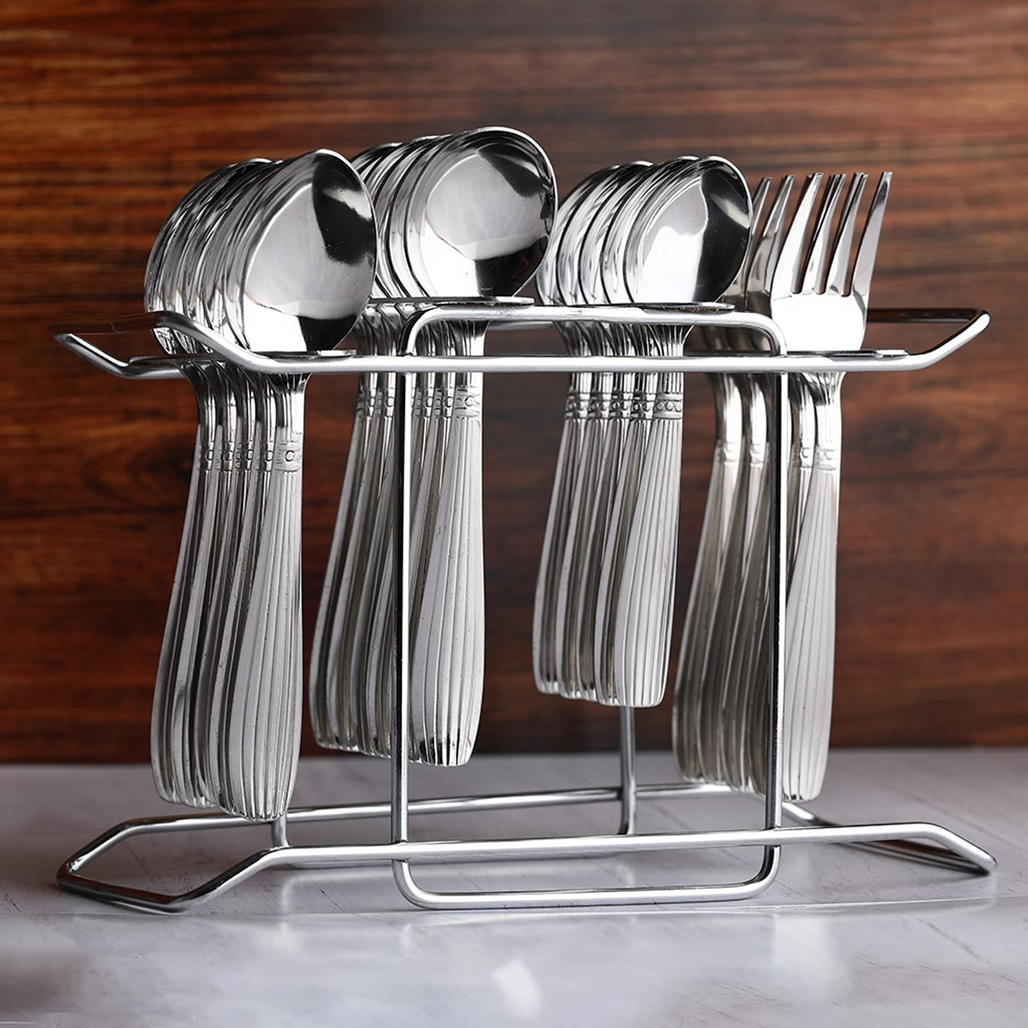 Heart Home cutlery set contains 6 dessert spoons, 6 dessert forks, 6 Tea Spoon and 6 baby spoons. It can meet the needs of most families. It enhances the look of your dining table. This is made from quality Stainless Steel, durable enough for everyday use, making it highly sturdy resistant to corrosion. Ideal set for many occasions, your daily use, outdoor dinnerware, party serving, & buffet. Can be good gifting option also. Made with food-grade stainless steel material, the cutlery set is dishwasher safe and is surely easy to clean. Just wash them off with mild detergent powder and you are done.Detailed Specifications: