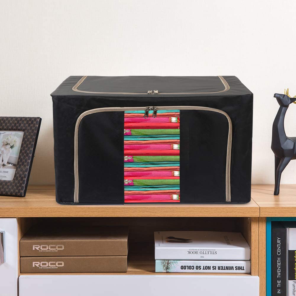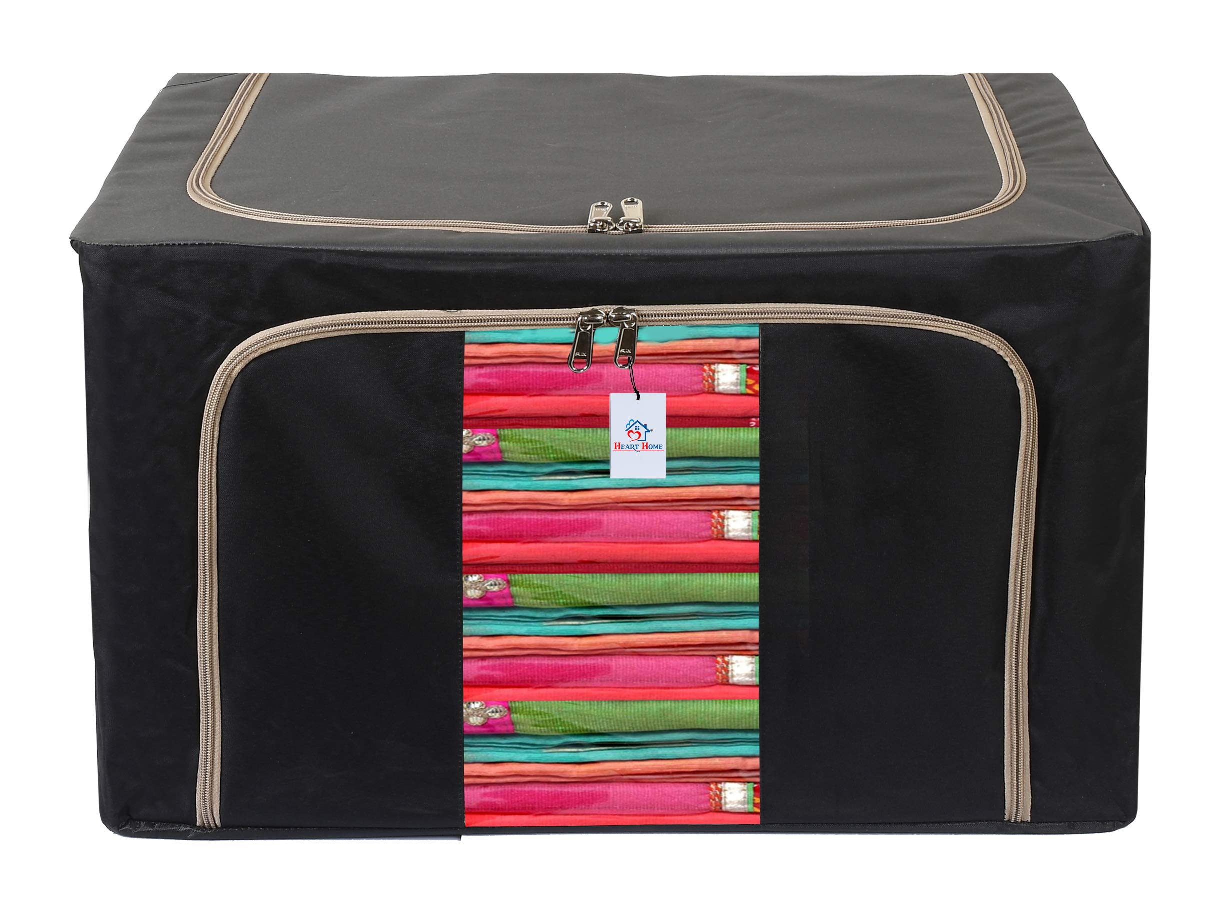 Pack, zip, and transport household essentials with a clear view! The Heart Home Storage Bin set is the perfect way to store your clothing and household items. It features a front and top zipper opening, with two carry handles, and a large transparent front window. The generous size provides plenty of room for seasonal apparel, bedding, linens, holiday decorations, toys, accessories, and more. A fully zippered closure protects items from dust, pest, and water damage while the large clear window allows you to see contents at a glance. As a bonus, each bin includes a label holder to quickly classify what’s inside. This set of two can be used individually or stacked together in your designated storage area. When not in use, simply collapse flat and tuck away under the bed, chest drawer, or closet shelf. Store out-of-season clothing or infrequently used items with ease around the home, office, or dorm. Don’t let limited closet space cramp your style! Make the most of your wardrobe with folded garments neatly displayed in sturdy storage bins. Whether used for sweaters, guestroom comforters, towels, or your favorite designer bags, these organizers de-clutter any closet, bedroom, laundry room, attic, and more. The convenient top opening makes it easy to load contents when placed on the floor, while the front opening provides access to contents while the bins are stacked. For easy transport, use the portable carry handles and label holder to identify contents as you pack around the home, office, dorm, or travel to the car. The stackable design maintains shape with a sturdy metal frame and folds flat for storage.Detailed Specifications: