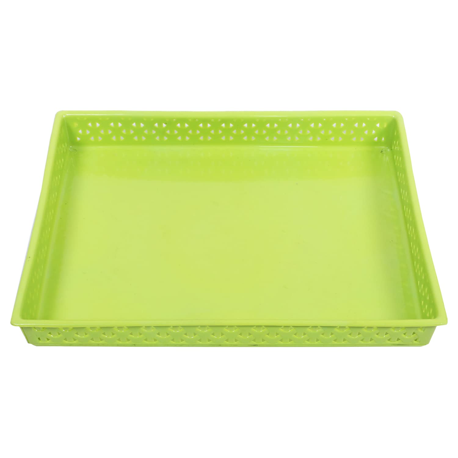 Heart Home Has Brought This Storage Tray. It is made of strong plastic material. It is capable of being brought and carried anywhere. It can be used to store and display fruits and vegetables in your kitchen and shop. With the help of this tray, you can separate your fruits and vegetables. Apart from storing vegetables, you can also use it to keep files or important papers in your office. Hence we can say that this is a versatile tray which can be used for many of your tasks. It comes in a rectangular shape and the color may vary depending on the availability. This storage tray can be ideal for offices, schools, shops, hospitals, home and kitchen.Detailed Specifications: