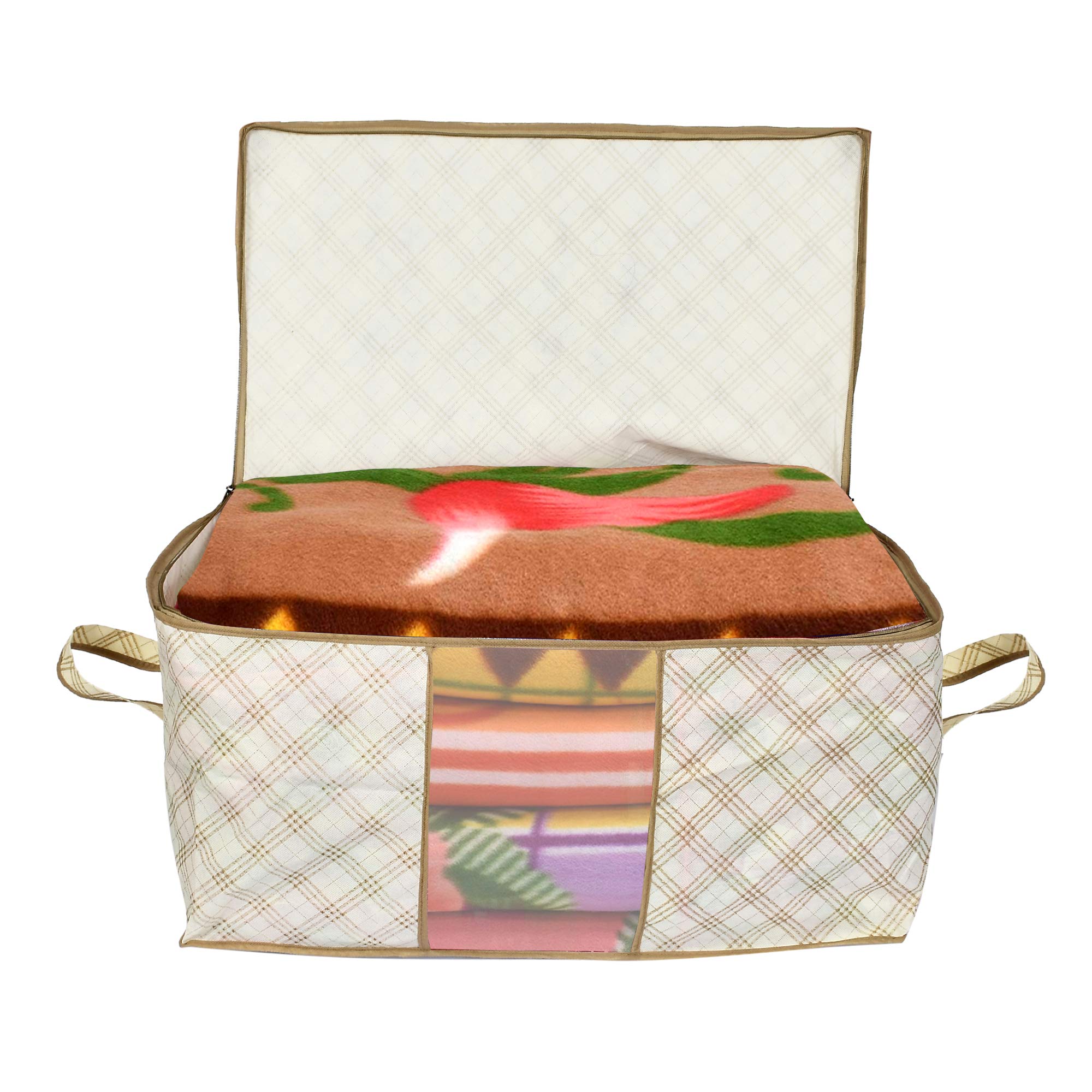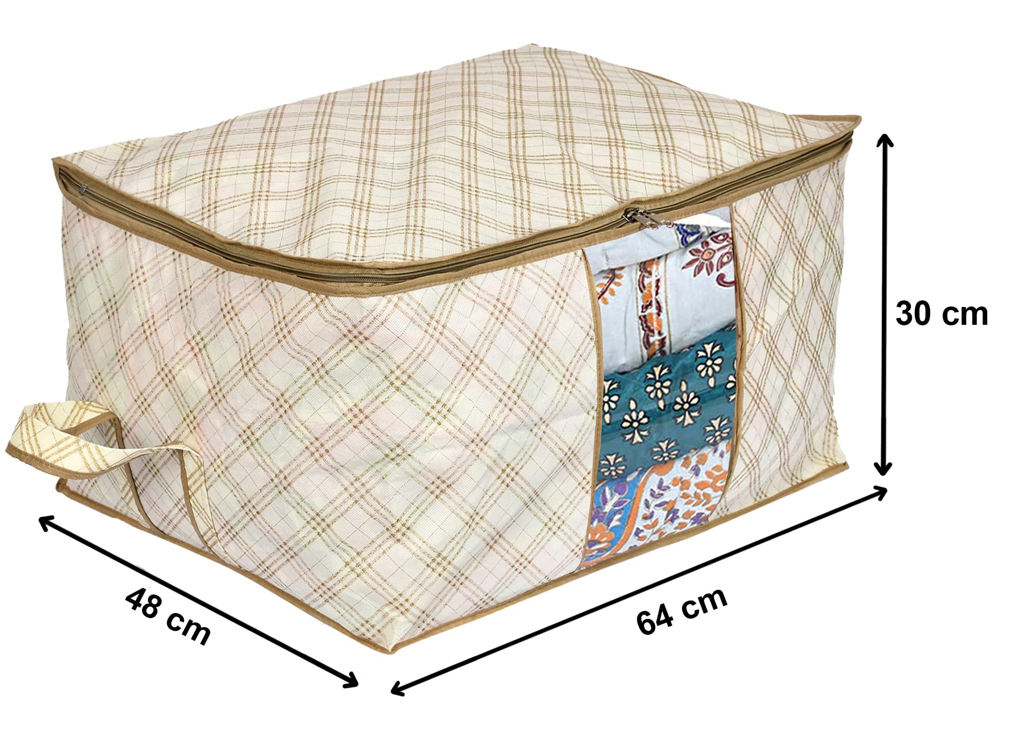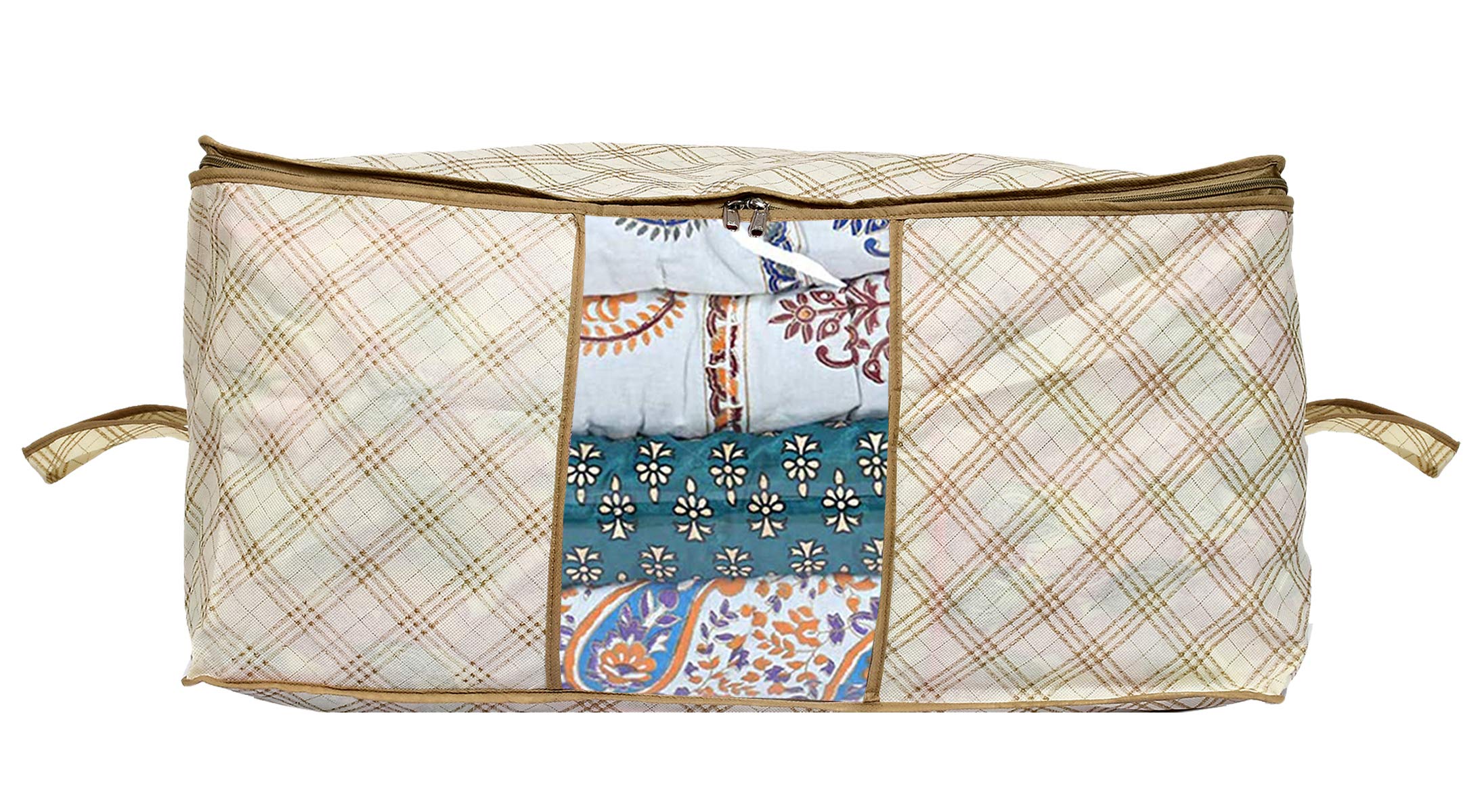 Heart Home under bed storage bag extends the storage capacity. In this, you can store many of your things that are roaming everywhere in your house due to a less fixed place. It helps in keeping the things well-organized and minimizes your organizing efforts. It also saves your time of searching across the wardrobes and rooms. The under bed bag is made spacious to hold your essentials that don’t occupy much space and has ample storage space and capacity. You can keep the bag under your bed, when not needed. The transparent front window given in the bag facilitates easy peeking inside the bag to find things without creating a mess. Its window is comparatively wide that allows a fuller view inside. Its two-way zippers offer more ease to keep and bring properly, without disturbing other items and creating a mess.Detailed Specifications: