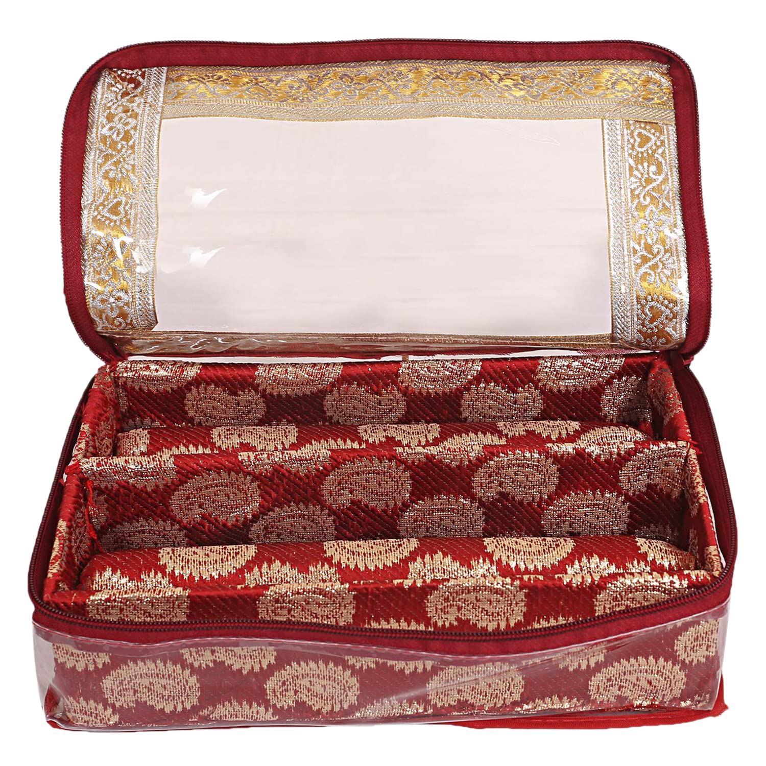 Heart Home storage box, organizer is ideal for storing bangles, watches, Bracelets, jewellery, small accessories etc. This is used to organize your bangles systematically and protect them from breakage so, keep delicate your bangles safely this is enough to keep your bangles and all needs. This bangle box is made of good quality laminated wooden and paperboard material so, this is very durable, long-lasting and very useful. There are 1 rods inside to hold bangles stiffly at a place and avoid unnecessary tangling and breaking. It gives them a strong and stable hold to keep the brittle and beautiful bangles safe. It can accommodate many bangles and helps you in organizing them safely. The box is strong and thus helps in holding the bangles to avoid any breaking and damage. The strong frame fits at any comfortable place and looks indeed beautiful due to its decoration on a strong frame. The three rods fitted into the box completely hold the bangles firmly and strongly. The transparency of the pouch makes it even more revealing and attractive. The see-through pouch helps you see and know what is there inside and what is missing. If anything goes missing or bangles are broken we can immediately take the requiRed steps of either replacing or getting new ones. It always reminds us of the availability and unavailability. With elegant appearance and considerate design, this watch case is great for personal use, shop display and home decoration. Will be an ideal gift for birthday, valentine's day, wedding, Christmas and new yearDetailed Specifications: