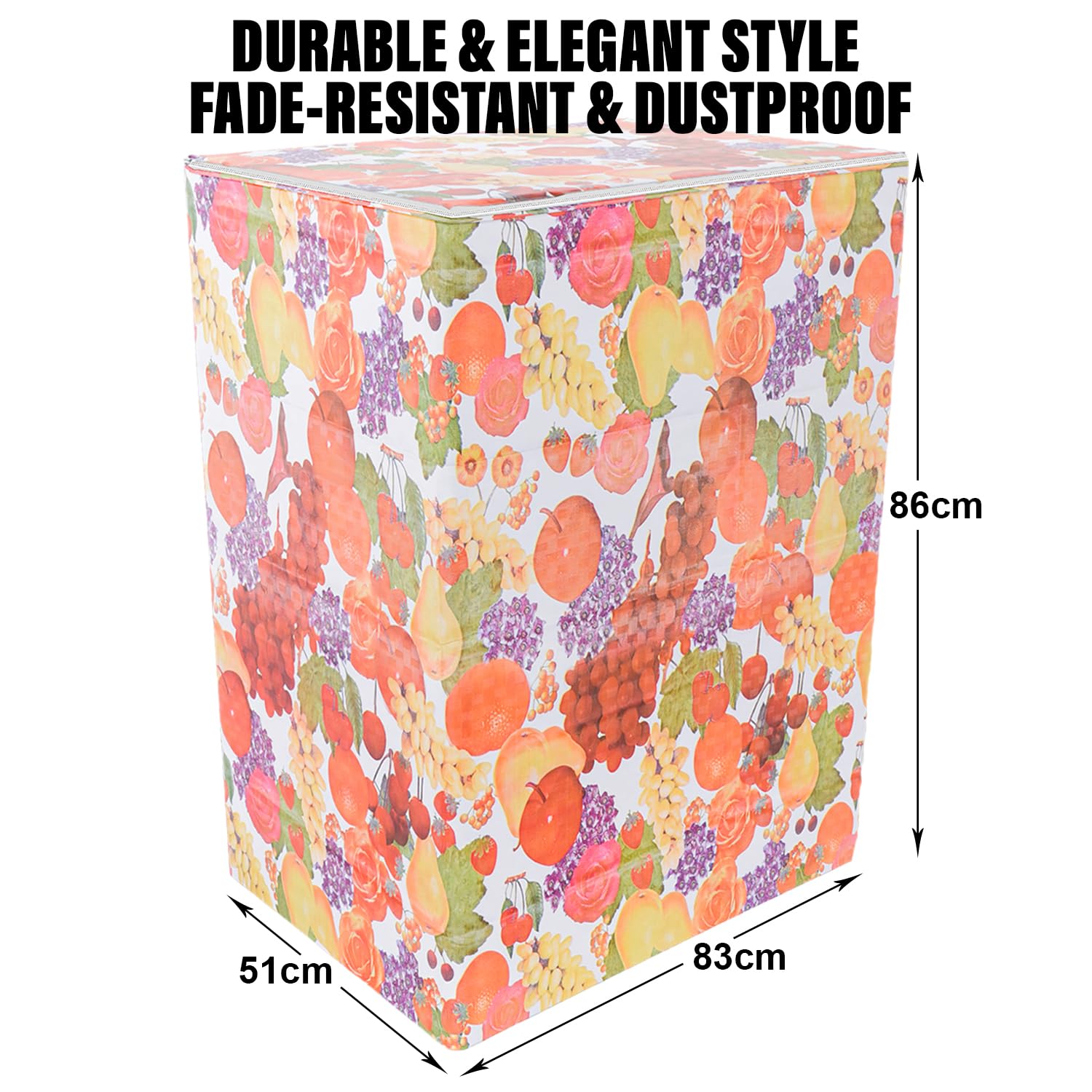 • ⚡ PACKAGE CONTAIN : 1 Piece Washing Machine Cover | Fruit Print | Top Load Semi-Automatic | MATERIAL : PVC | PACKAGE DIMENSION : 86 cm x 83 cm x 51 cm