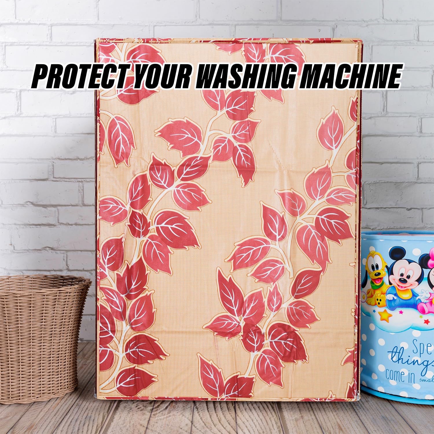 Heart Home Washing Machine Cover | Leaf Print Washing Machine Cover | PVC | Front Load Washing Machine Cover | Red
