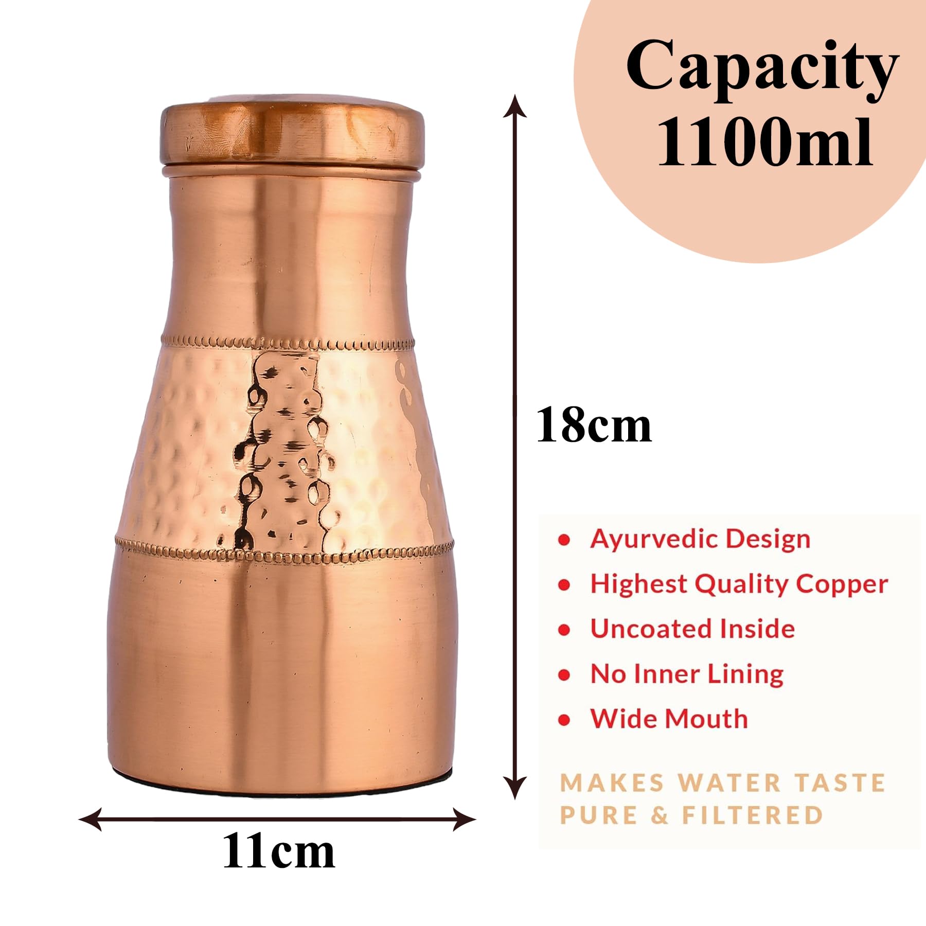 Introducing the Copper Water Bottle with an Inbuilt Glass by Kuber Industries, a unique and practical addition to your bedroom essentials. This thoughtfully designed copper water bottle comes with a seamlessly integrated glass, offering both convenience and style. The natural antibacterial properties of copper enhance the quality of water stored within, making it a healthy choice. This versatile piece not only serves as a water bottle but also as a decorative element for your bedroom.Detailed Specifications: