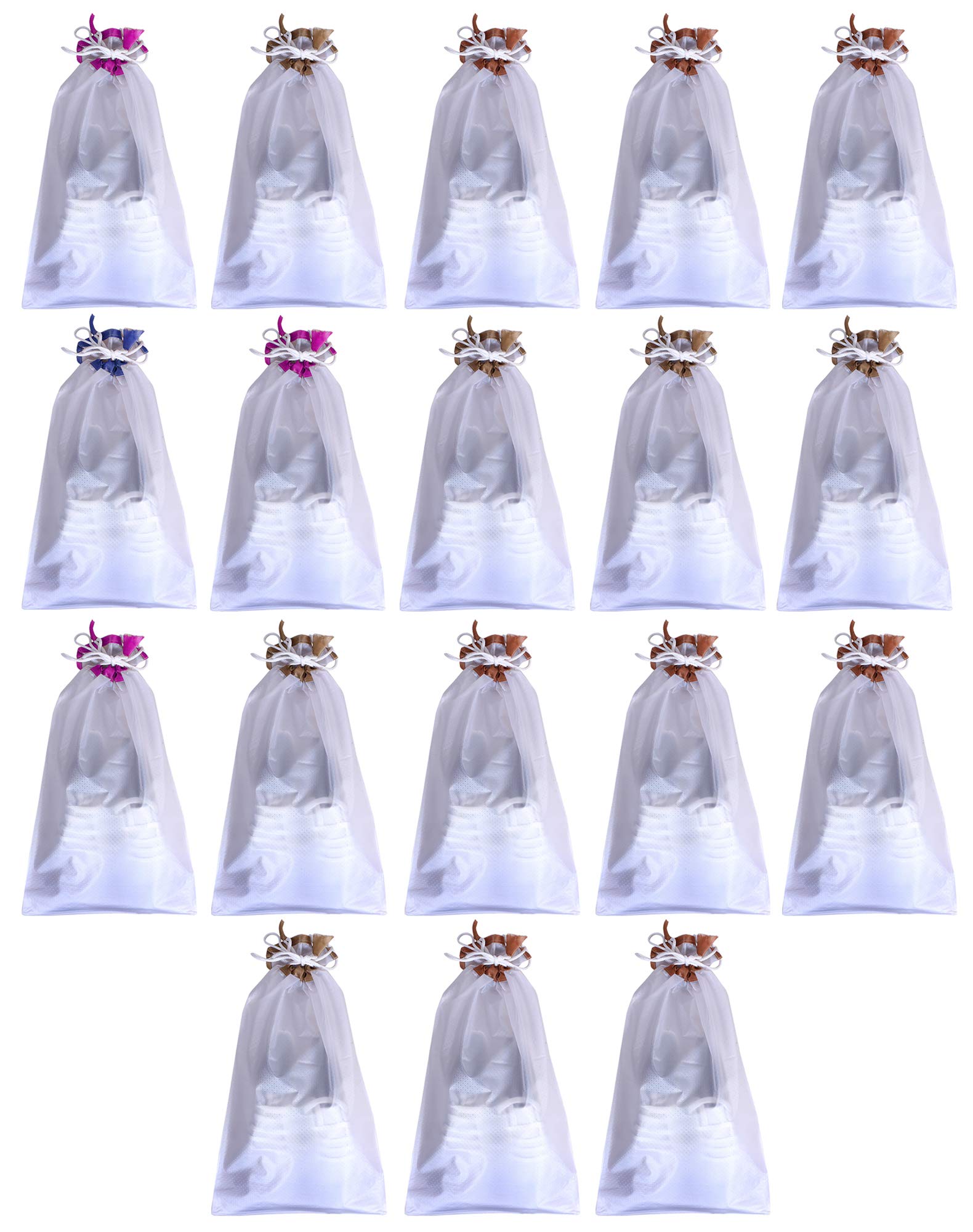 Every season finished, you need to organize the off-season shoes into your closet or under-bed, If you put the shoes in closet or under bed directly, it is very dirty when you wear them in next season, the shoe bags will protect your shoes clean, and you needn't take each pairs out and know which pairs you stoWhite in it from the transparent window. There are two sizes for different size shoes storage, the medium size is for Slippers, Sandals,leather shoes etc. The large size is suitable for high heel shoes, boots etc. This shoe bags are the good helper for household shoe closet or off- season shoes organization. Firstly, it is very smart and portable. when you prepare the traveling or business trip, you usually need some pair of shoes changing in different situations. This shoe bags will divide the shoes into your clothes or other items and make them clean. With this Shoe bags today and discover how easy it can be to take your shoes along wherever you go! Package Included: Pack of 18 Shoe bagsDetailed Specifications: