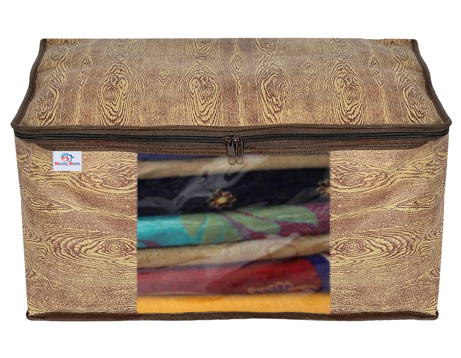Heart Home saree/cloth organizer perfect to keep your heavy sarees & other cloth safe and maintain their elegance and new look, the Non-Woven large saree cover bag with transparent window not only helps you keep your sarees safe from external environment but also ensures that the quality of the saree is maintained. Built and designed with three different layers, it comes with two zippers and a transparent window that eases overall use of the bag. Uniquely designed to prevent kept clothes from insects, the bag also prevents your sarees from moisture and dust.Detailed Specifications: