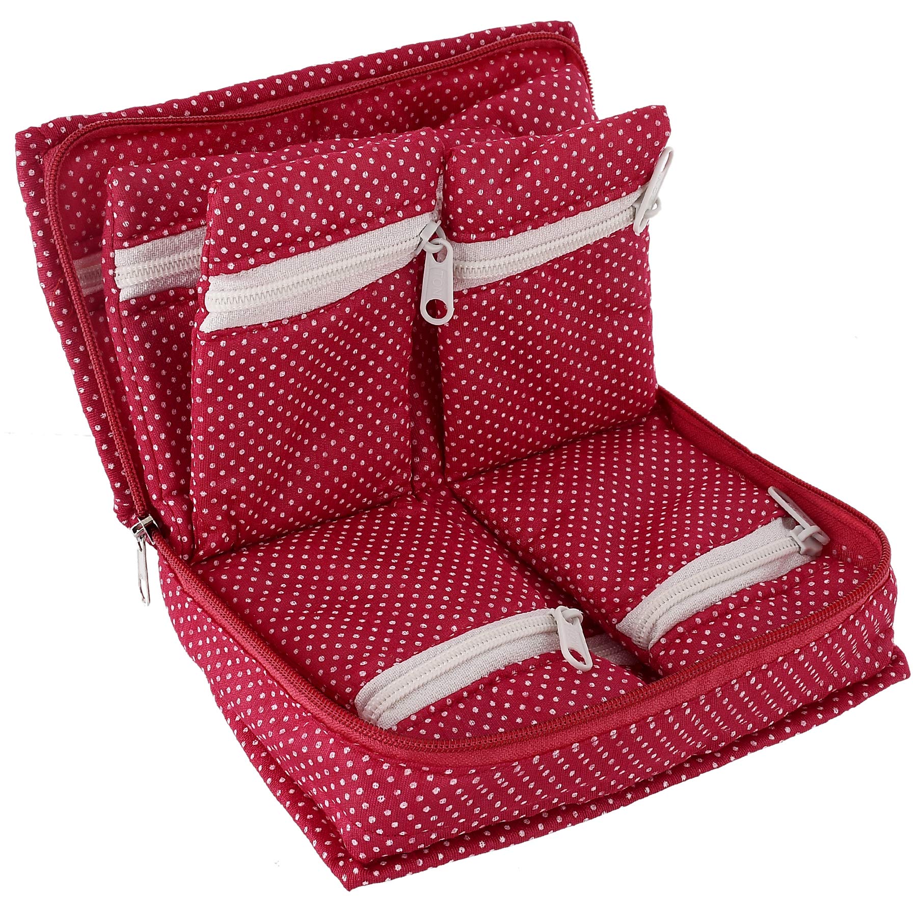 Heart Home Jewellery Organizer to organize and store your jewellery, watches, accessories in one pouch with separate pockets. It protects your accessories from getting damaged and scratches. Heart Home jewellery pouch is having total 7 pockets, 4 small and 3 big to store accessories as per your needs.It is cushioned from all the sides to protect your expensive and favorite jewellery from breakage, dust and moisture. Best option to use while travelling and store all your accessories in one pouch with separate pockets.Detailed Specifications: