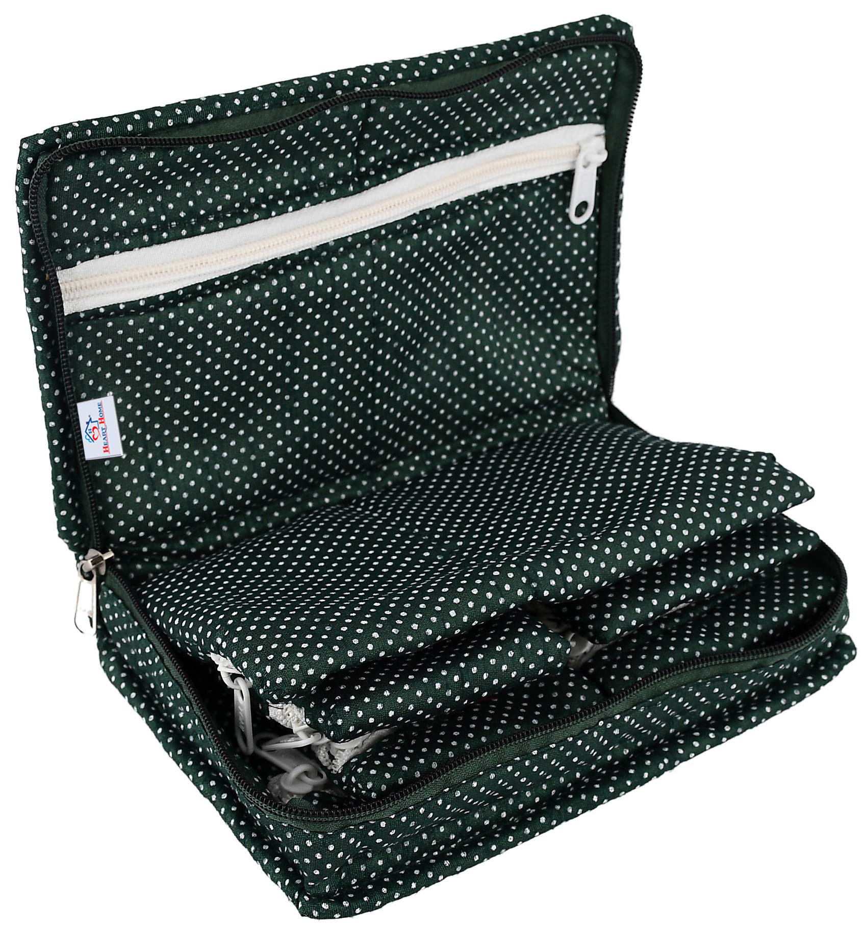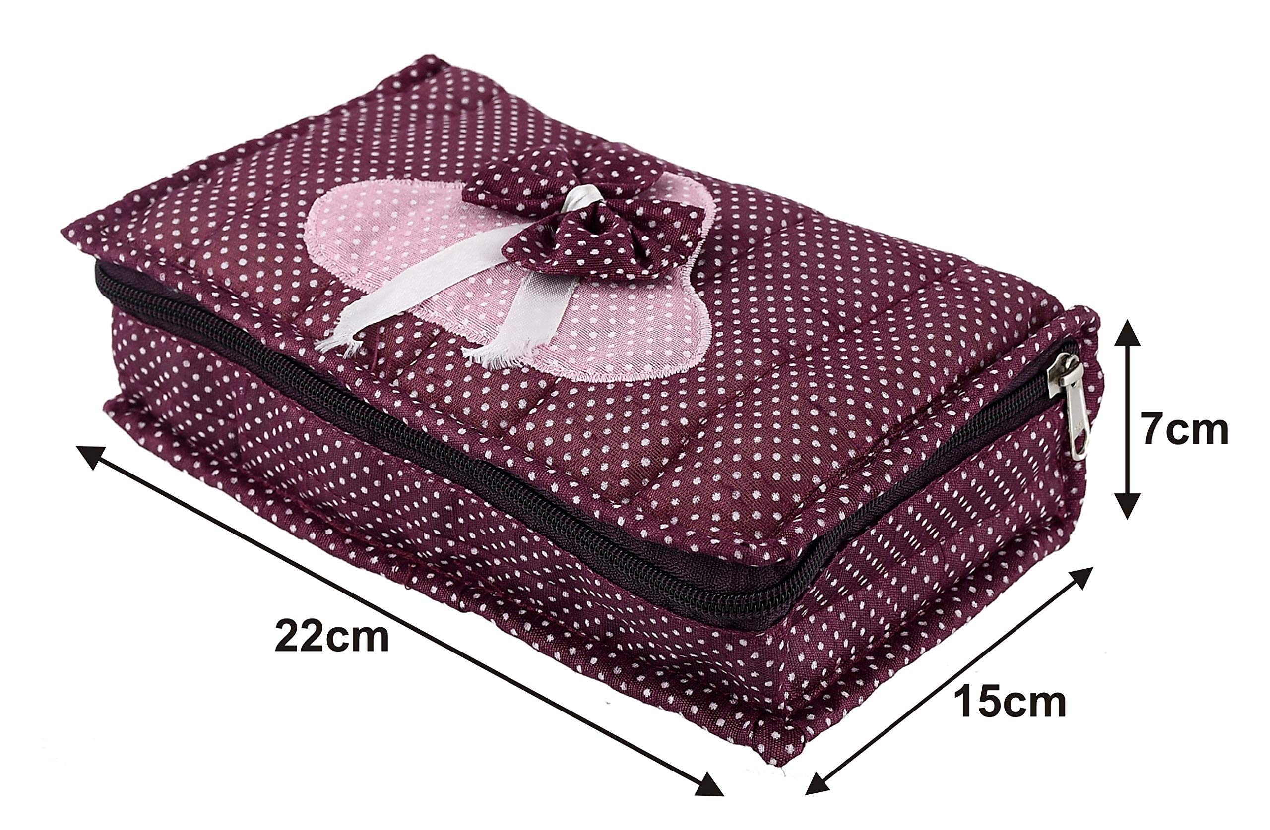 Heart Home Jewellery Organizer to organize and store your jewellery, watches, accessories in one pouch with separate pockets. It protects your accessories from getting damaged and scratches. Heart Home jewellery pouch is having total 7 pockets, 4 small and 3 big to store accessories as per your needs. It is cushioned from all the sides to protect your expensive and favorite jewellery from breakage, dust and moisture. Best option to use while travelling and store all your accessories in one pouch with separate pockets.Detailed Specifications: