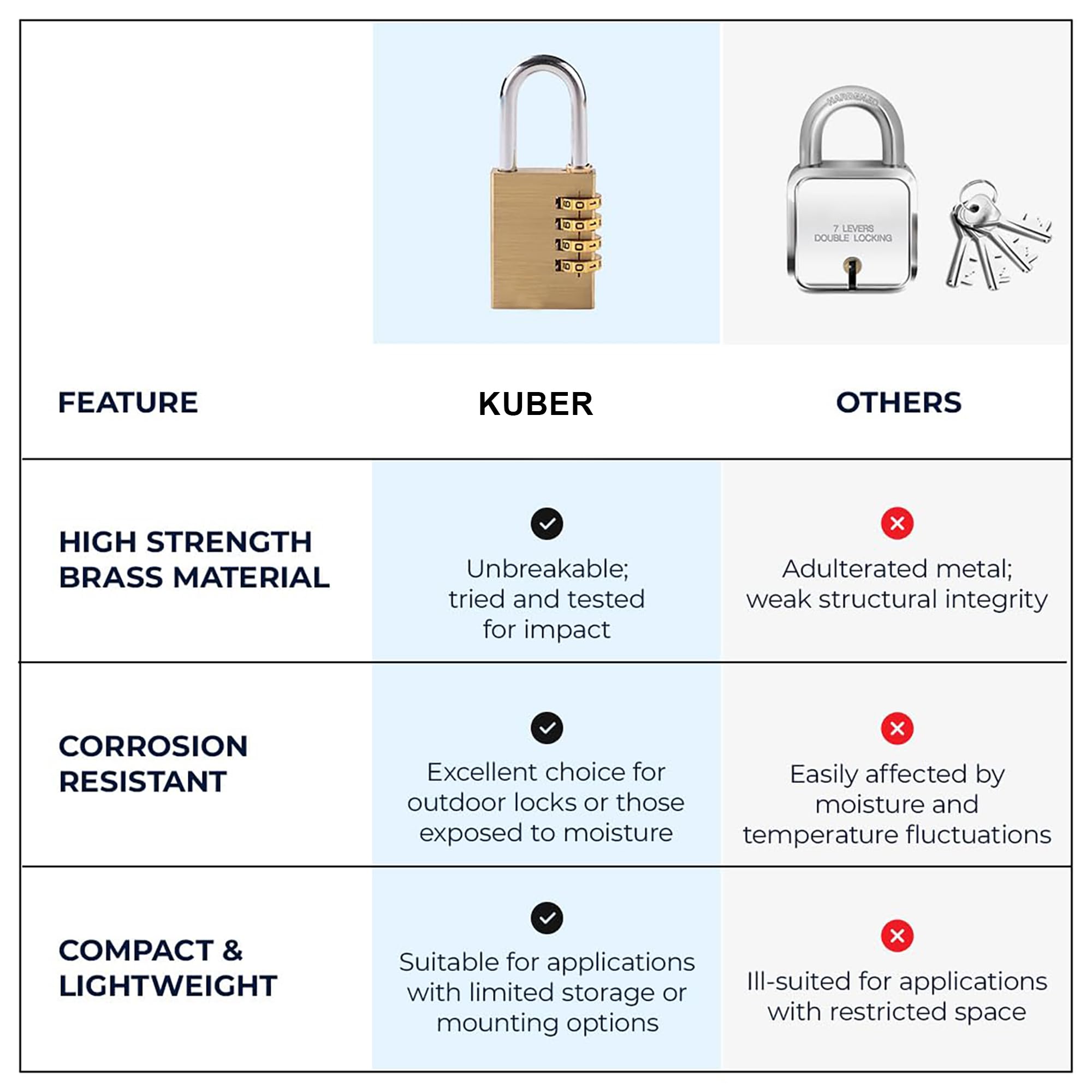Introducing the Homestic -4 Digit Lock (8041), a reliable and sturdy lock made of high-quality brass material, designed to withstand physical wear and tear while being corrosion-resistant. The 4-digit combination system allows users to set a unique code that can be reprogrammed, making it a versatile and hard-to-tamper-with security option. With a compact size of 61MM(L)*22MM(W)*12MM(H) and a total body height of 35MM, including a shackle of diameter 3MM, it is an easy and secure fit to your luggage or briefcases. The lock is designed to withstand repeated use over an extended period, capable of being unlocked more than 20,000 times, ensuring long-lasting use. Eliminate the hassle of carrying a key, which can be lost or misplaced, with Homestic locks that can be used in a variety of settings, such as securing luggage, backpacks, briefcases, lockers, and more. Trust in the Homestic -4 Digit Lock (8041) for reliable and versatile security.Detailed Specifications: