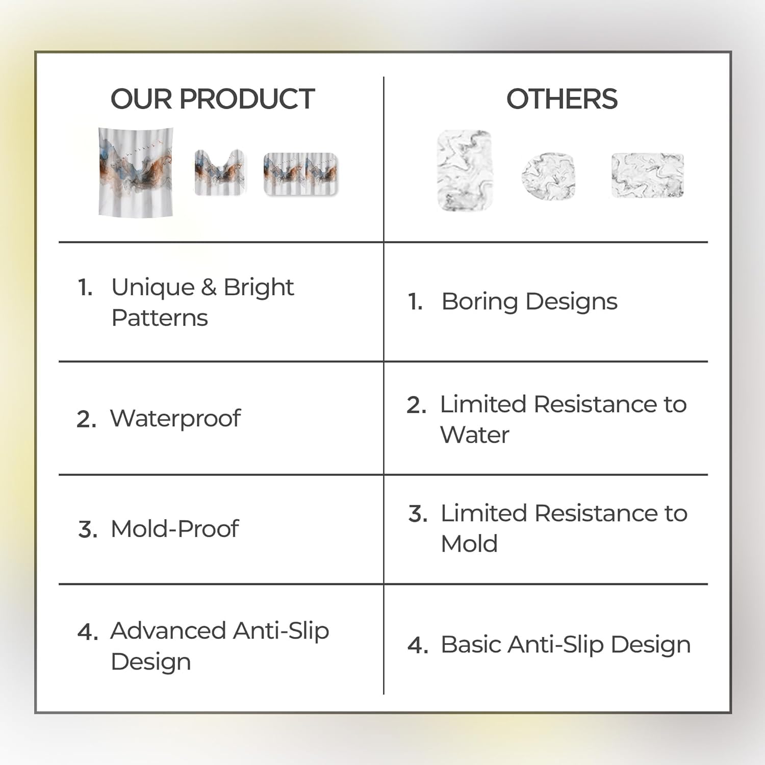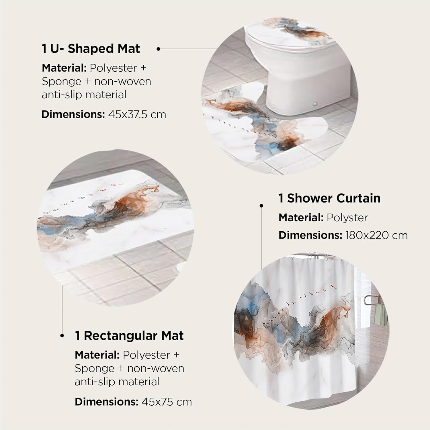 Included Components : | 3 Piece Shower Curtain And Bathmat Set |