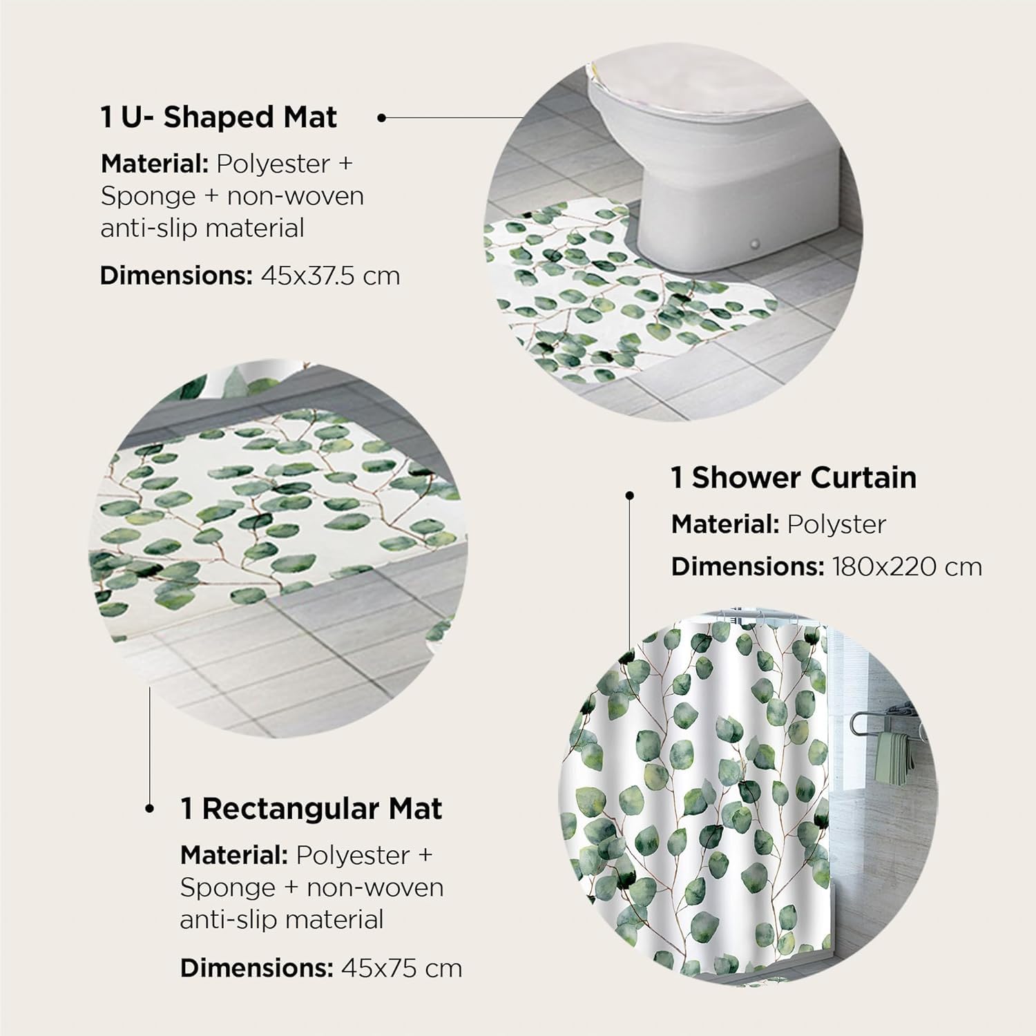Introducing the Homestic Shower Curtain Set - a perfect addition to your bathroom decor! This set includes a 7 feet long waterproof shower curtain and 2 anti-slip bathmats, providing you with both style and functionality. Crafted with high-quality polyester material, the shower curtain features a beautiful floral print that adds an elegant touch to any bathroom. The curtain's length of 7 feet ensures that it covers your shower area effectively, keeping water off your bathroom floor. The set also includes two bathmats - a U-shaped mat and a rectangular mat. Both mats are made from a combination of polyester, sponge, and non-woven materials, providing a soft and comfortable feel under your feet. The mats are designed to prevent slipping, ensuring safety for you and your family, especially in the kid's bathroom. Homestic understands the importance of easy installation, which is why our shower curtain set is designed for quick and hassle-free setup. It is also machine washable, making it convenient to clean and maintain. Not only does this shower curtain set enhance the aesthetics of your bathroom, but it also meets the expectations of our valued customers. With great quality and a functional design, our Homestic Shower Curtain Set is built to last. It will not sag or fall down like cheaply made alternatives. The Homestic Shower Curtain Set comes in a multicolor print, with a pack size of three. The set includes the shower curtain itself and two bathmats, ensuring you have everything you need for a complete bathroom makeover. Upgrade your bathroom decor with the Homestic Shower Curtain Set today and enjoy the benefits of an easy-to-install, high-quality, and aesthetically pleasing addition to your space.Detailed Specifications: