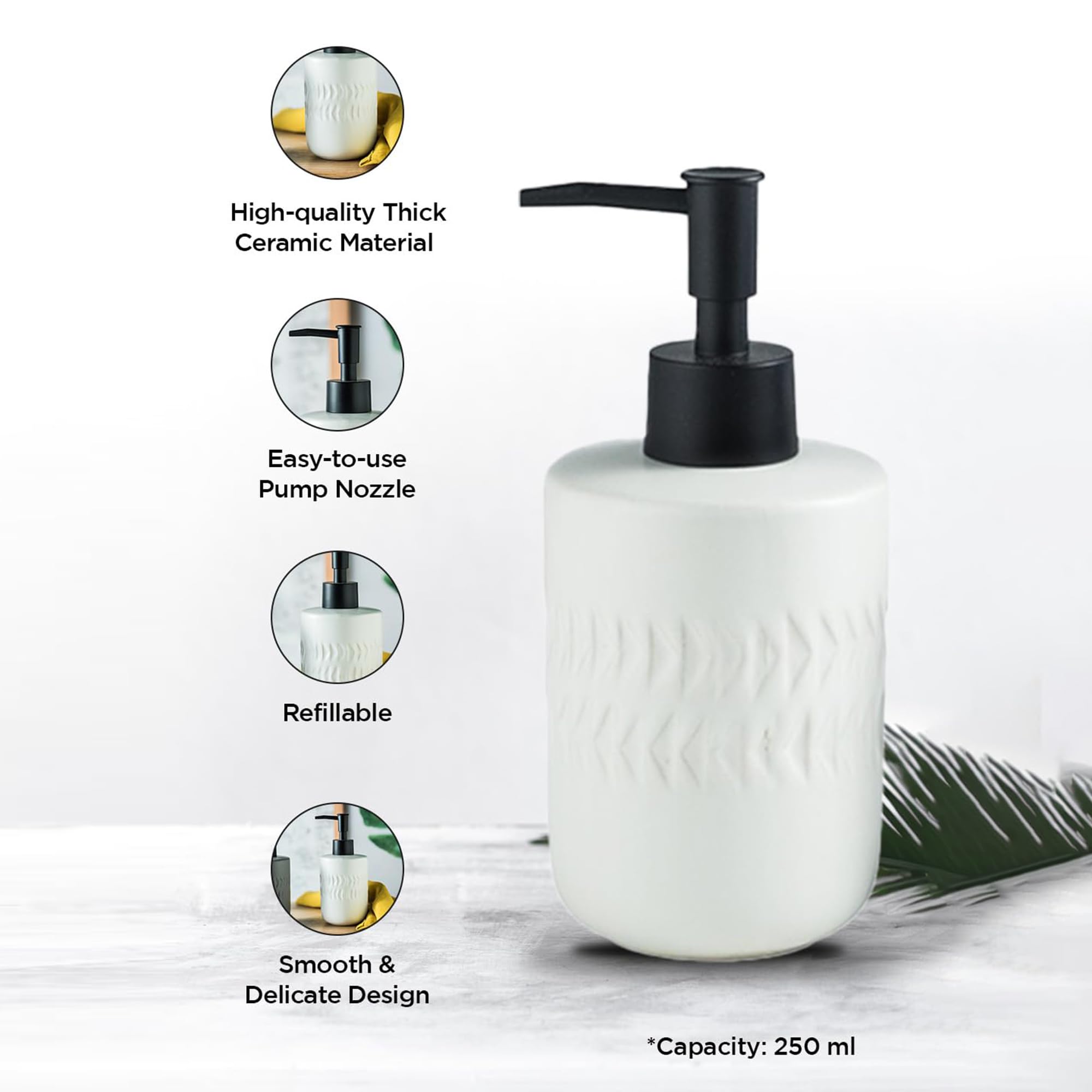 Introducing the Homestic Ceramic Dispenser, a beautifully crafted bathroom accessory that combines elegance, functionality, and eco-friendliness. Made from delicate, smooth, and thick ceramic, this dispenser adds a touch of sophistication to any bathroom setting. Its reusable design promotes a healthy and environment friendly lifestyle, making it an excellent choice for both personal use and gifting purposes. Invest in the Homestic Ceramic Dispenser and elevate your bathroom experience. Embrace the combination of beauty, practicality, and environmental consciousness in one exceptional product.Detailed Specifications: