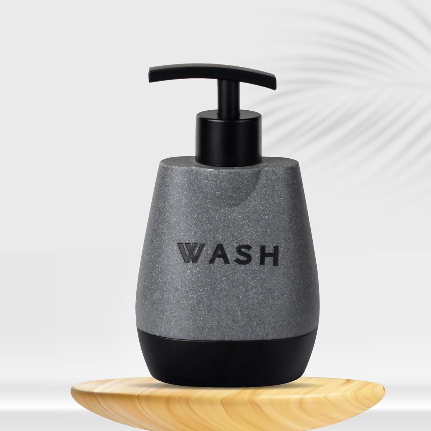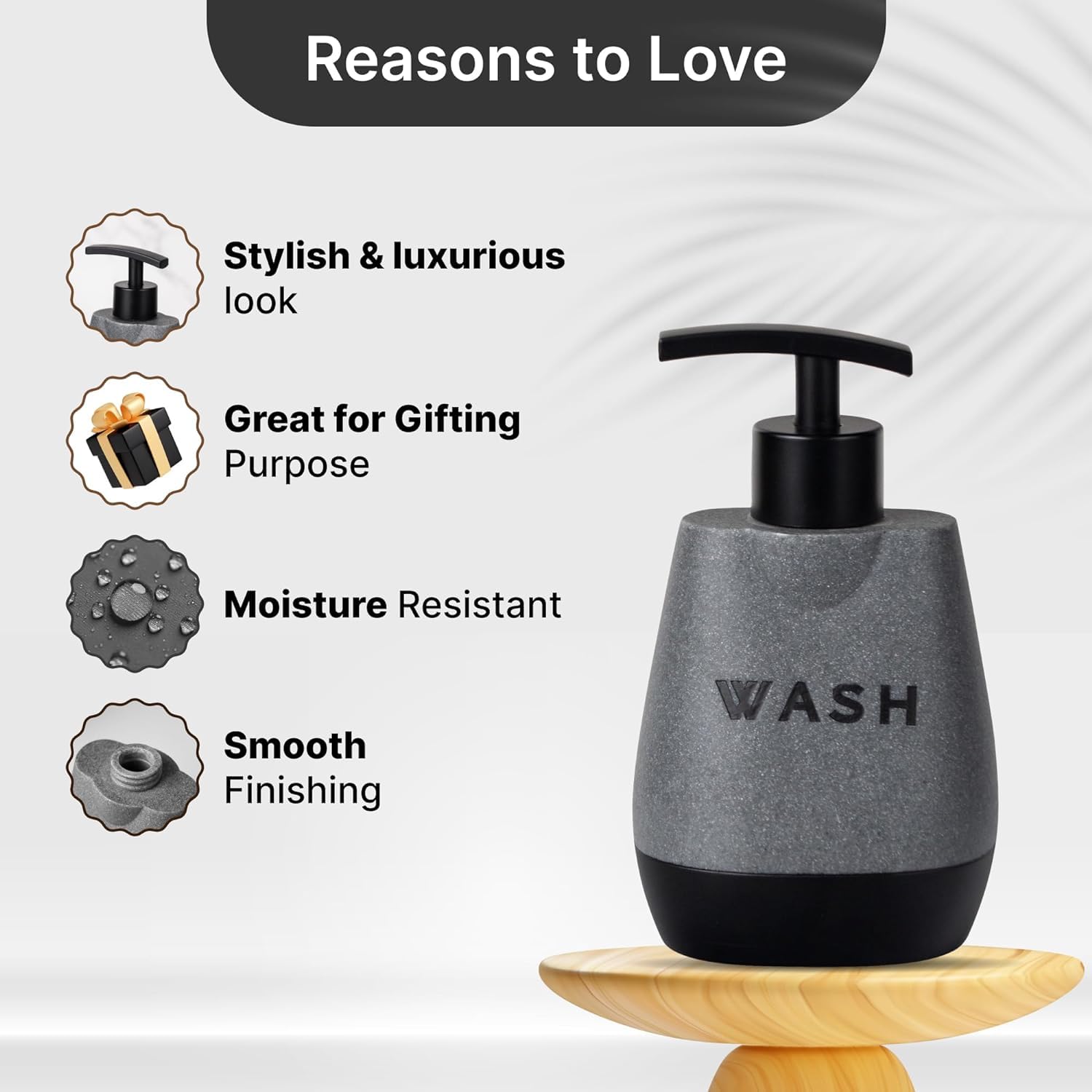 Enhance the elegance of your kitchen or bathroom with the Homestic Premium Polyresin Liquid Soap Dispenser in a modern and stylish grey color. Made from high-quality poly-resin, this dispenser is scratch-resistant, durable, and moisture-resistant, ensuring a long-lasting addition to your space. With a convenient 250ml capacity, this dispenser is perfect for everyday use in your home, office, or hotel. Its non-fragile design and labeled accessories, including a toothbrush holder, soap dish, and water cup/tumbler, provide added functionality and aesthetic appeal. Ideal for families, kids, or anyone looking for a high-quality soap dispenser, the Homestic dispenser offers ease of use and a sleek design that customers appreciate. Its matte finish and round shape add a touch of sophistication to any room. Whether you need a dispenser for your kitchen, bathroom, or floor, this Homestic soap dispenser is a versatile and practical choice. Say goodbye to durability concerns and leakage issues with this top-quality product that offers great value for money. Elevate your space with the Homestic Premium Polyresin Liquid Soap Dispenser for a touch of luxury and convenience.Detailed Specifications:
