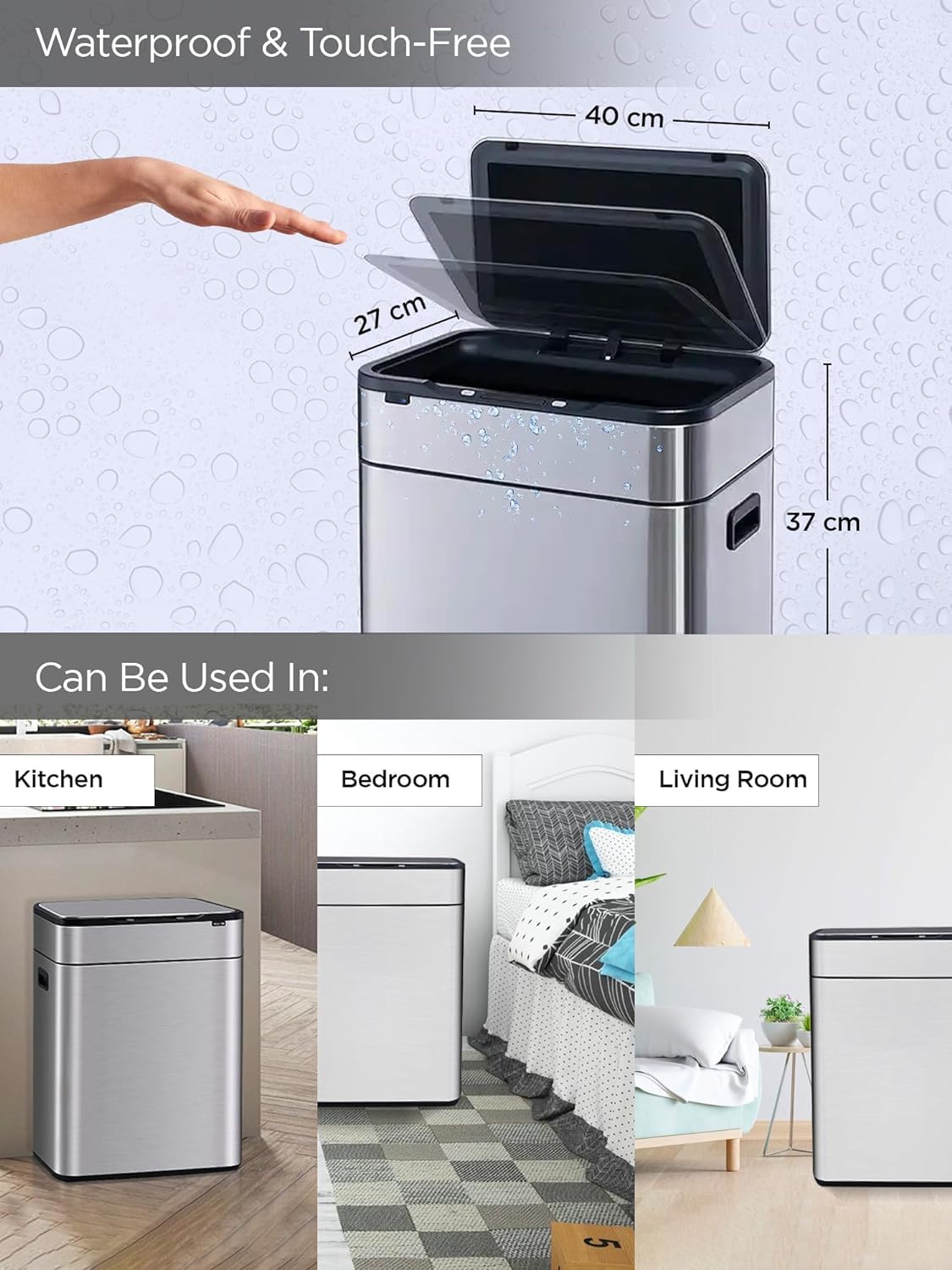 Elevate Your Waste Disposal Experience with the Premium Sensor Dustbin from Homestic, a unique and stylish addition to your home or office space. This state-of-the-art dustbin is designed to seamlessly blend functionality with modern aesthetics. Equipped with cutting-edge sensor technology, it offers a touchless and hygienic solution to waste disposal. The premium build ensures durability, while the sleek design adds a touch of sophistication to any environment. The sensor activates with a wave of your hand, effortlessly opening the lid and making waste disposal a breeze. With a generous capacity, this dustbin is not only a practical necessity but also a stylish statement, reflecting your commitment to both convenience and contemporary design in every corner of your living or working space.Detailed Specifications: