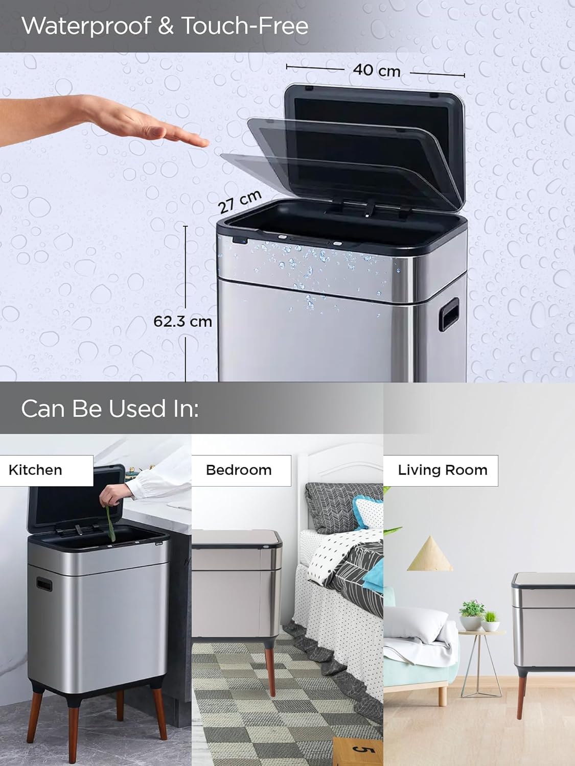 Elevate Your Waste Disposal Experience with the Premium Sensor Dustbin from Homestic, a unique and stylish addition to your home or office space. This state-of-the-art dustbin is designed to seamlessly blend functionality with modern aesthetics. Equipped with cutting-edge sensor technology, it offers a touchless and hygienic solution to waste disposal. The premium build ensures durability, while the sleek design adds a touch of sophistication to any environment. The sensor activates with a wave of your hand, effortlessly opening the lid and making waste disposal a breeze. With a generous capacity, this dustbin is not only a practical necessity but also a stylish statement, reflecting your commitment to both convenience and contemporary design in every corner of your living or working space.Detailed Specifications: