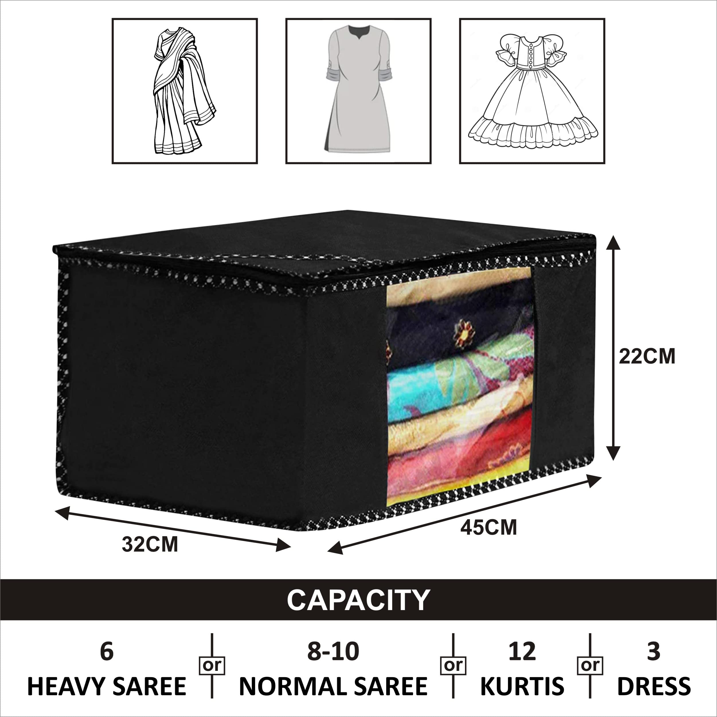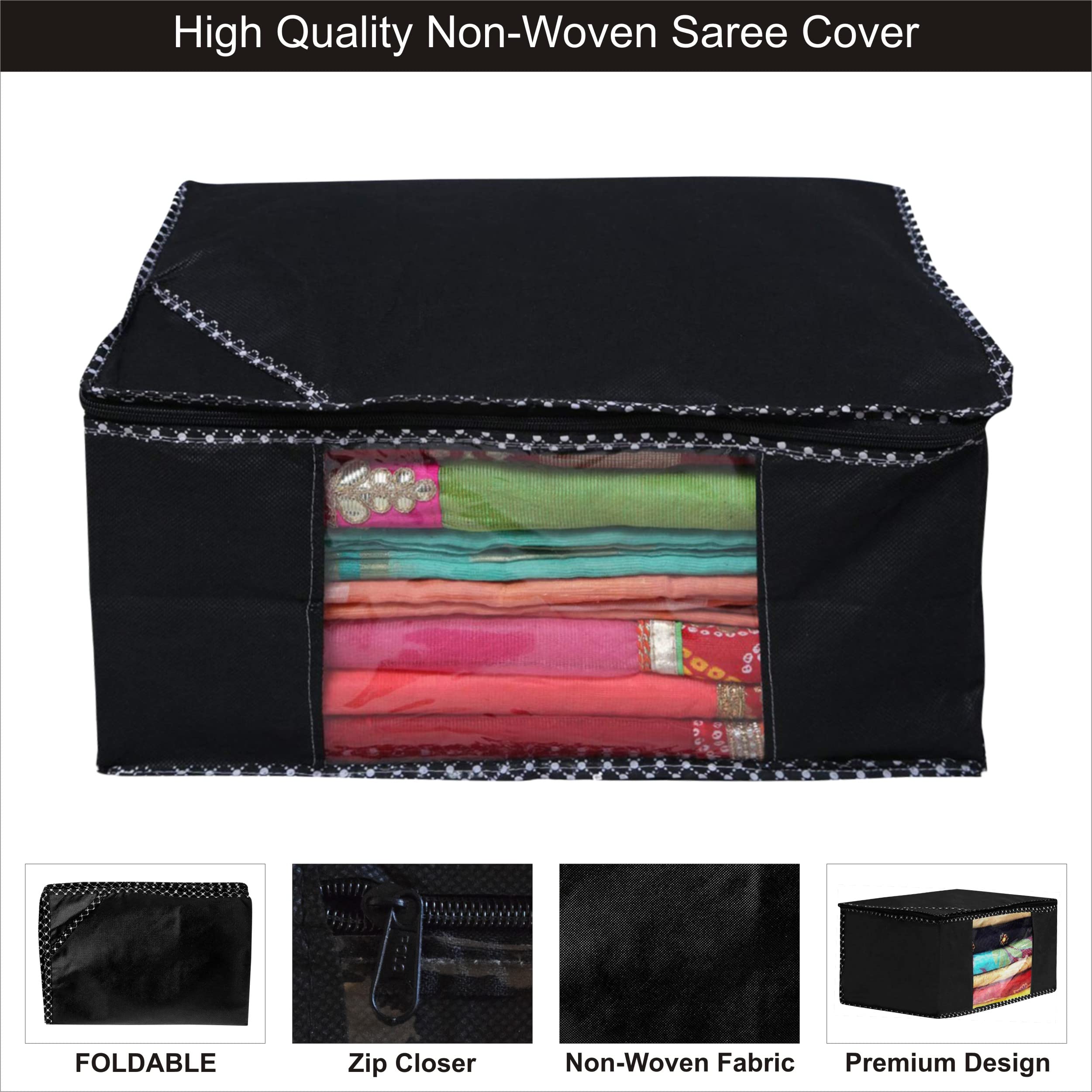 Homestic saree covers with zip is a great option for organizing and protecting your sarees. The use of non-woven, 90 GSM virgin fabric makes it durable and water-repellent, while the transparent top allows for easy visibility of what is inside the bag. The addition of premium quality zippers and quilted sides to provide cushioning also make this product seem practical and well-designed. It is also great for traveling, as you can pack your sarees and store them safely while on the go. It will help you to keep your sarees wrinkle free and well-protected for long-term storage, and also to keep them easy to access and identify, making it a perfect solution for both storing and protecting your sarees.Kuber Industries is a customer-loved brand that brings you everything you need to make a house a home. Right from nifty storage solutions to smart kitchen essentials, our products are known for their premium and durable quality.